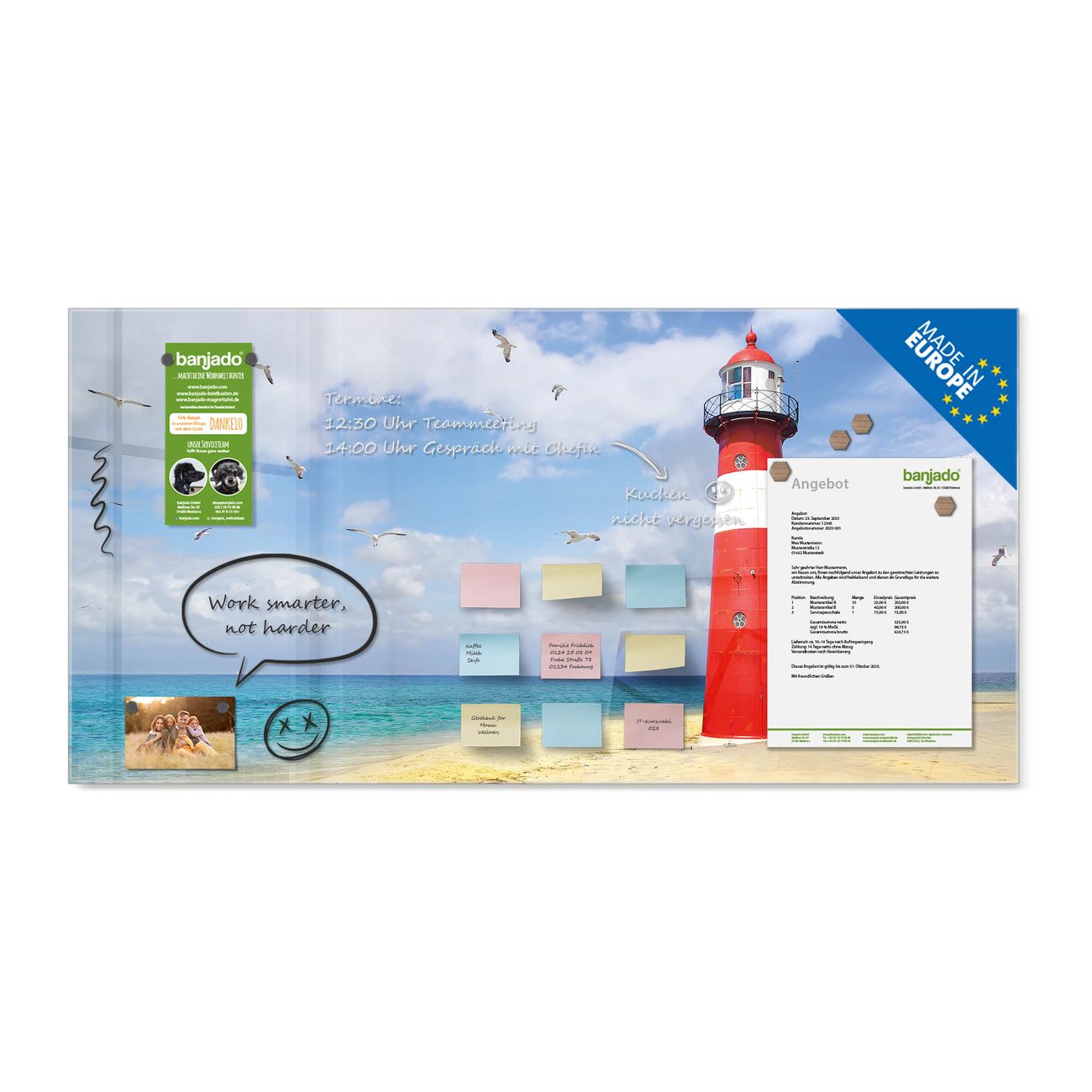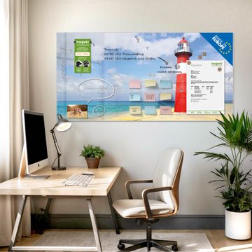 Die banjado Glas Magnettafel mit dem Motiv Motiv Leuchtturm Westkapelle verbindet Funktionalität mit Stil. Sie ersetzt das Zettelchaos durch klare Strukturen und bringt dabei eine warme, natürliche Atmosphäre in Ihr Zuhause. Ob im Büro, in der Küche oder im Eingangsbereich - dieses Design-Board zieht Blicke an und sorgt für Ordnung mit Charakter.