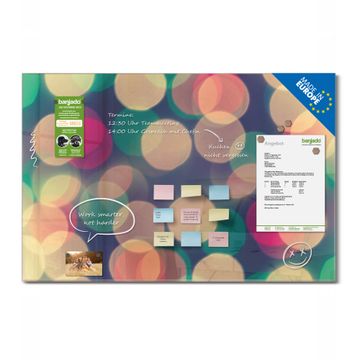 Die banjado Glas Magnettafel mit dem Motiv Motiv Lichtpunkte Weiß Grün Rot verbindet Funktionalität mit Stil. Sie ersetzt das Zettelchaos durch klare Strukturen und bringt dabei eine warme, natürliche Atmosphäre in Ihr Zuhause. Ob im Büro, in der Küche oder im Eingangsbereich - dieses Design-Board zieht Blicke an und sorgt für Ordnung mit Charakter.
