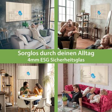 - Material: 4mm Sicherheitsglas mit Metallrückwand