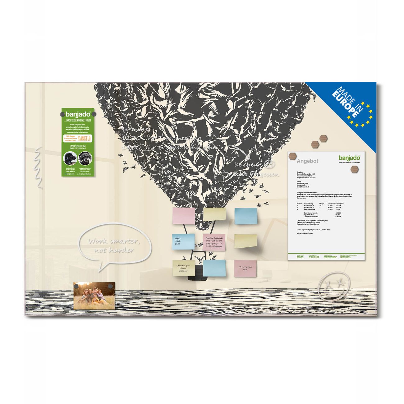 Bitte beachten Sie, dass ausschliessliche spezielle Magnete an der Glastafel haften. Wir empfehlen banjado Neodym Magnete, diese sind durch uns auf Wirksamkeit geprüft.