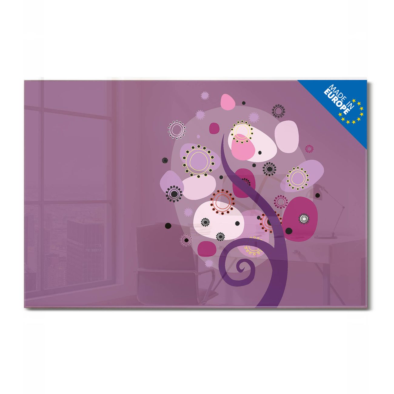 Glas Magnettafel im Querformat Motiv Lila Baum