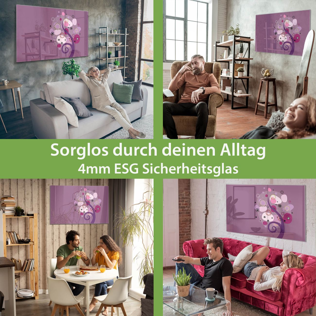 - Material: 4mm Sicherheitsglas mit Metallrückwand