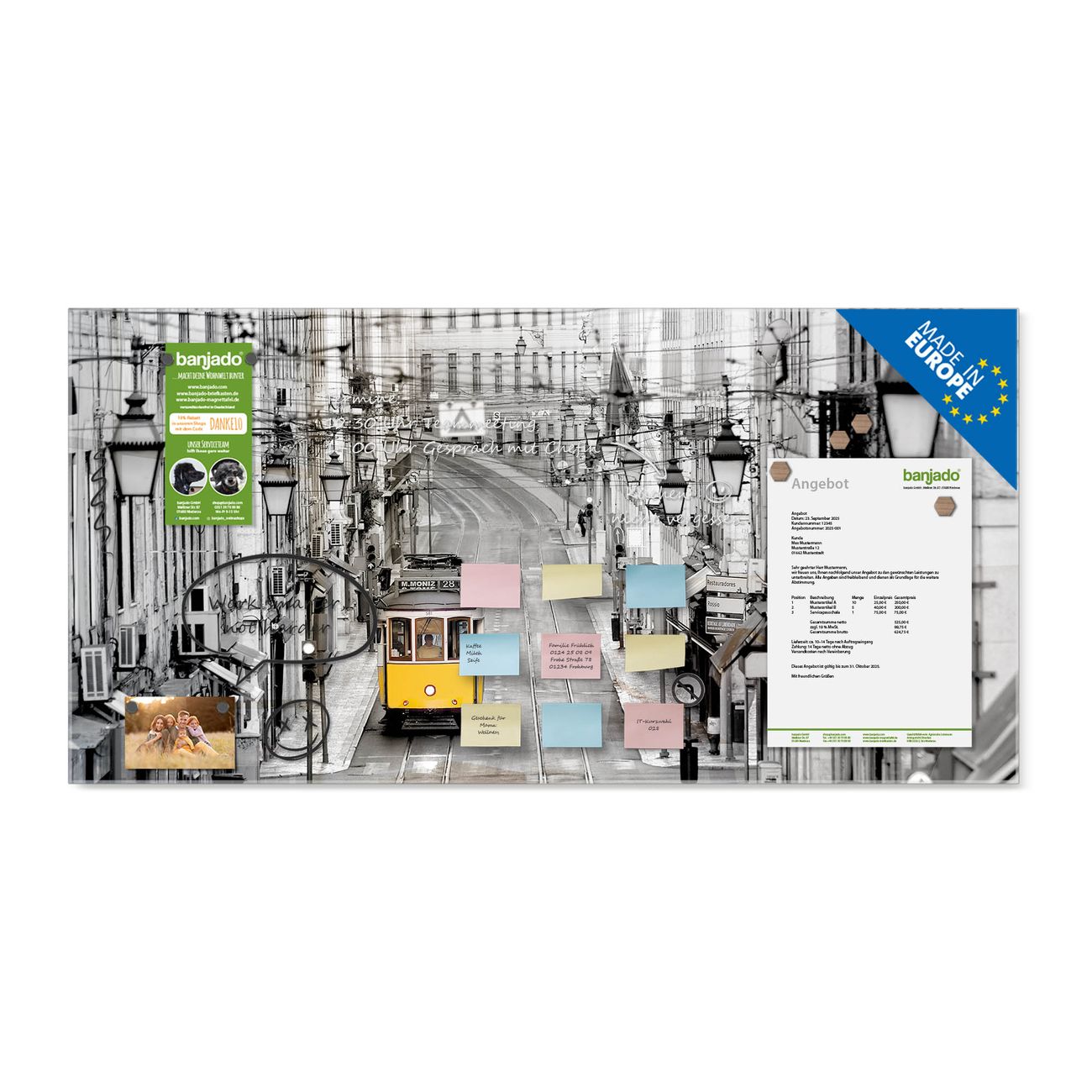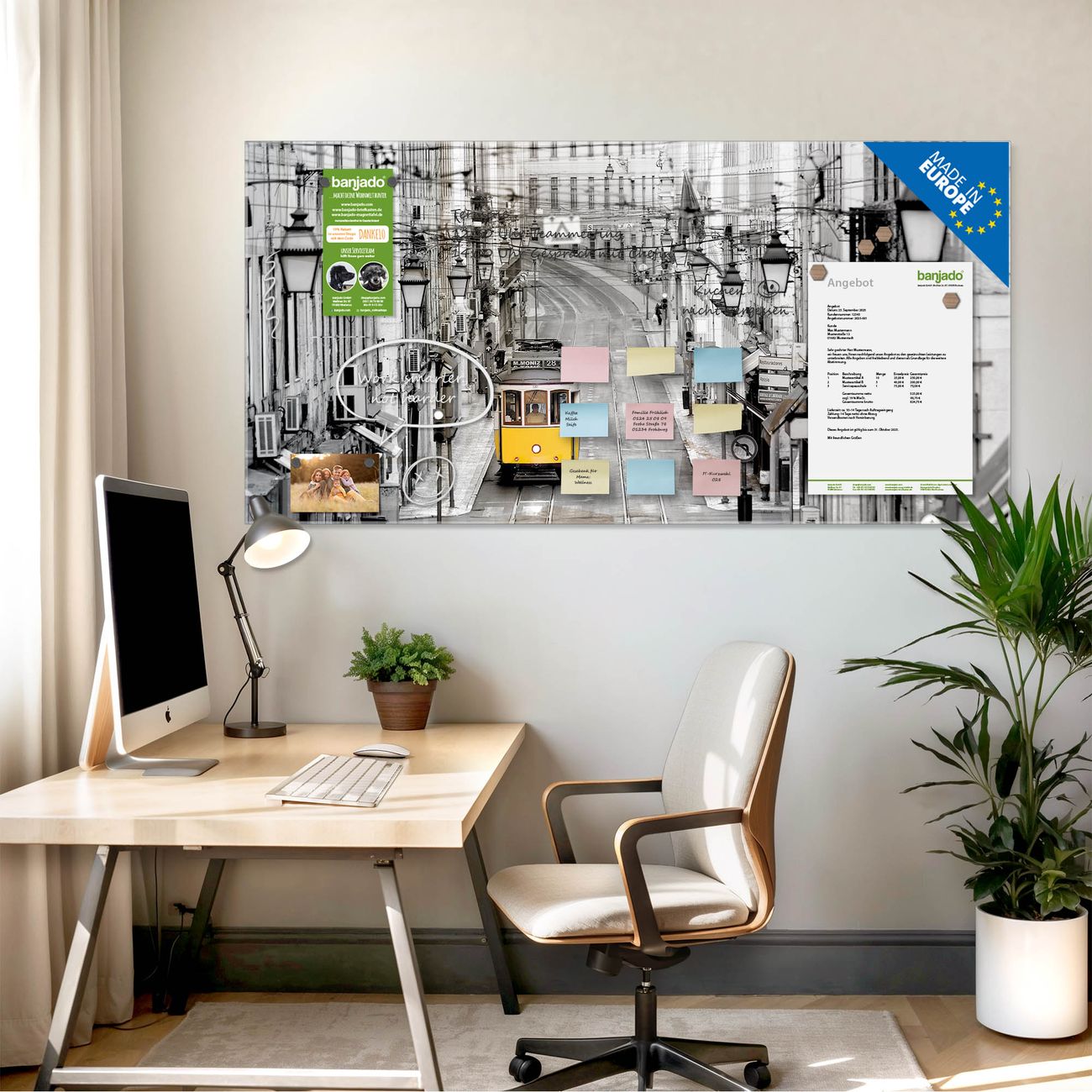 Die banjado Glas Magnettafel mit dem Motiv Motiv Lissabon verbindet Funktionalität mit Stil. Sie ersetzt das Zettelchaos durch klare Strukturen und bringt dabei eine warme, natürliche Atmosphäre in Ihr Zuhause. Ob im Büro, in der Küche oder im Eingangsbereich - dieses Design-Board zieht Blicke an und sorgt für Ordnung mit Charakter.