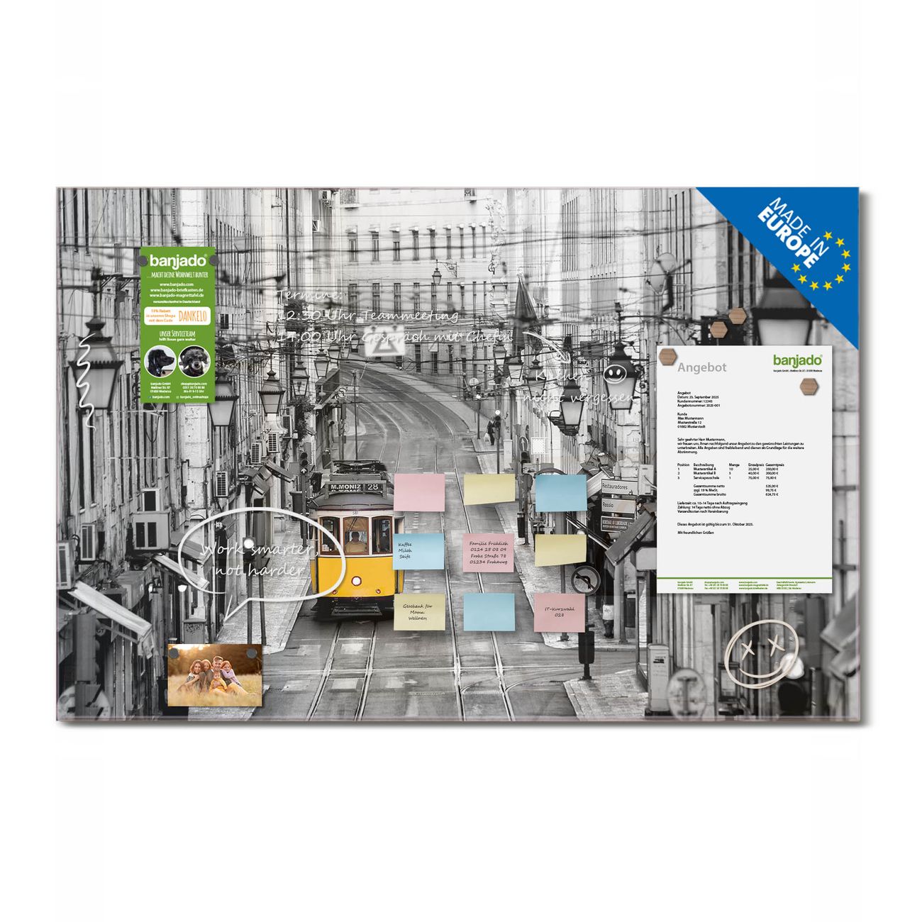 Die banjado Glas Magnettafel mit dem Motiv Motiv Lissabon verbindet Funktionalität mit Stil. Sie ersetzt das Zettelchaos durch klare Strukturen und bringt dabei eine warme, natürliche Atmosphäre in Ihr Zuhause. Ob im Büro, in der Küche oder im Eingangsbereich - dieses Design-Board zieht Blicke an und sorgt für Ordnung mit Charakter.
