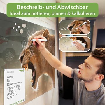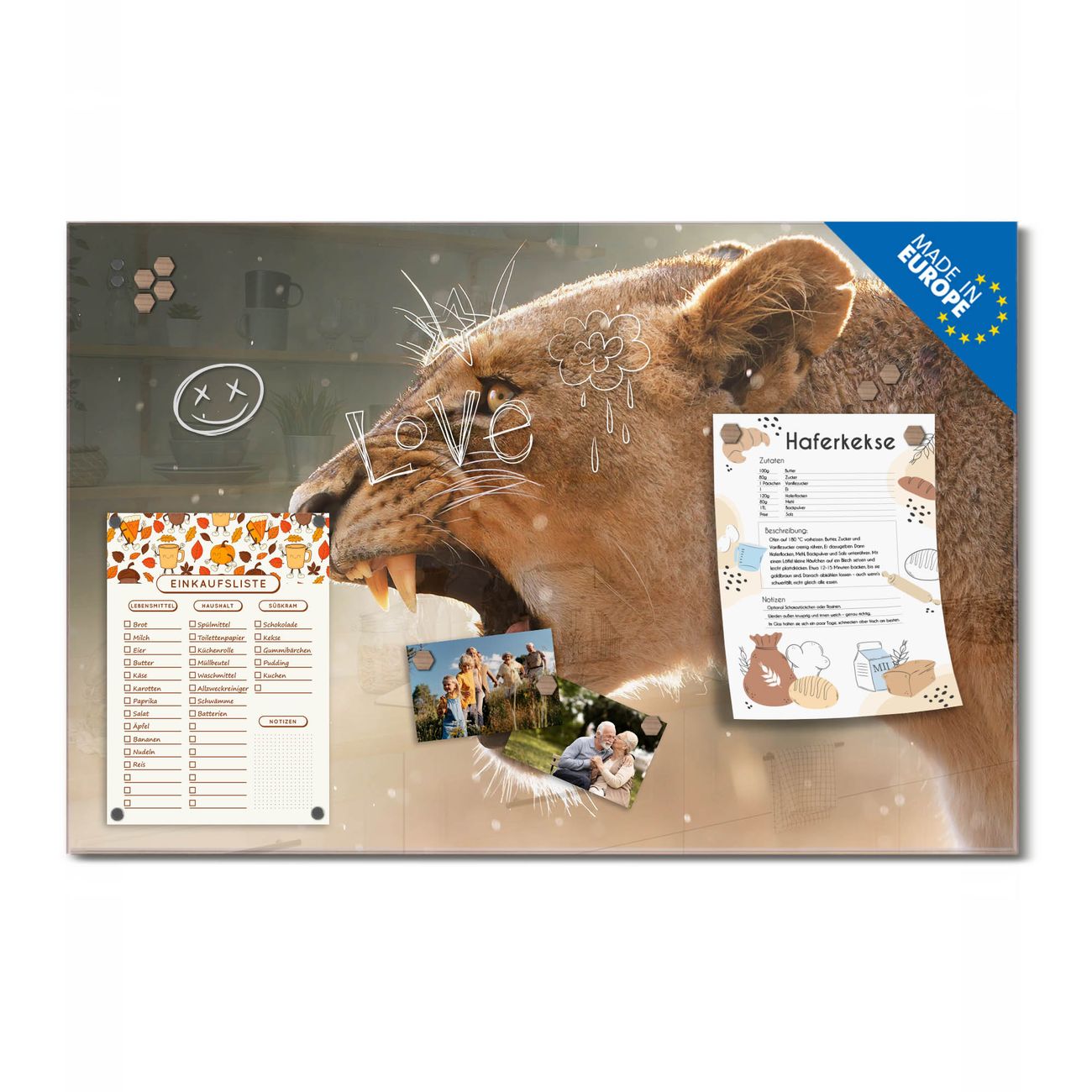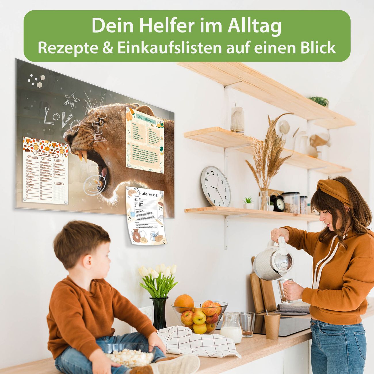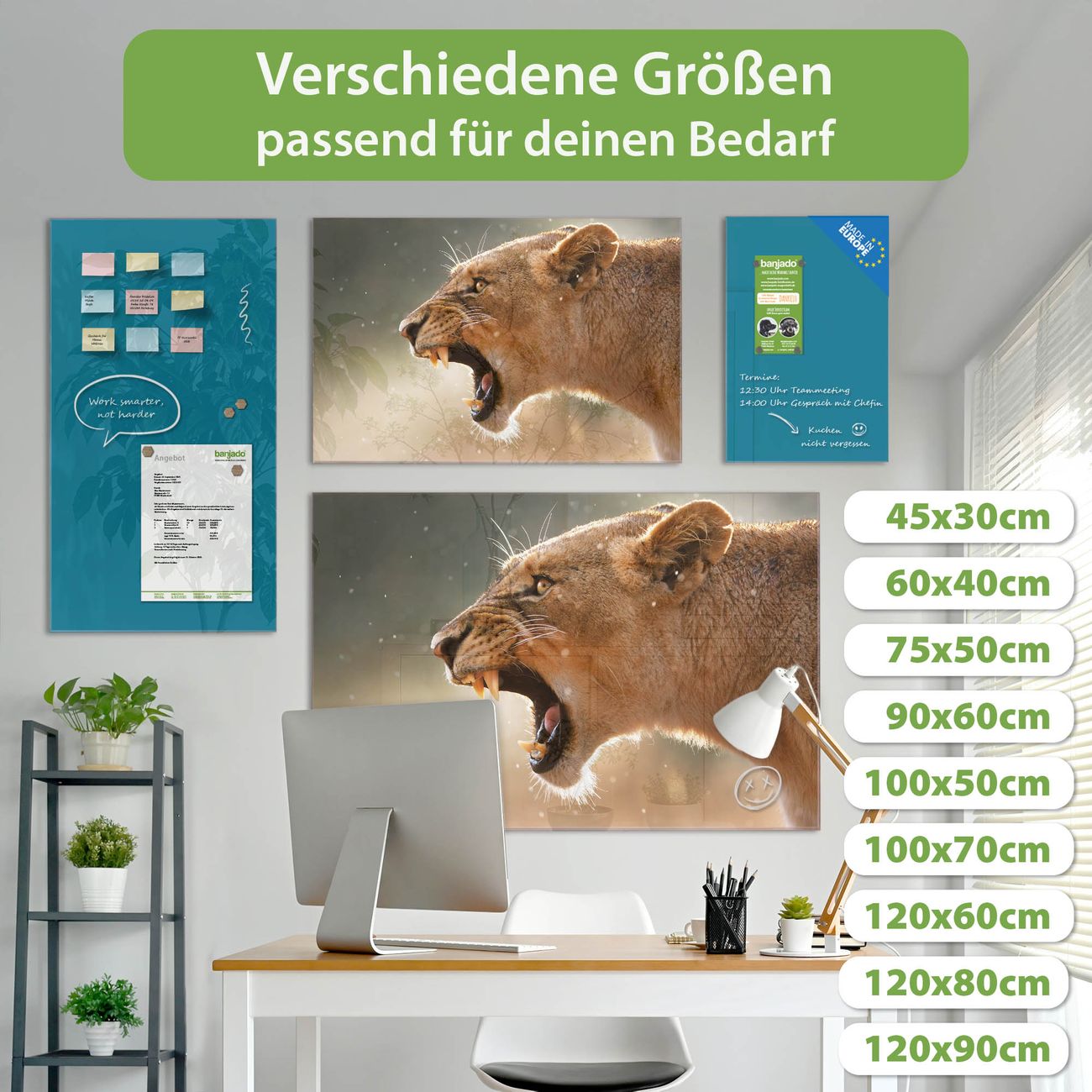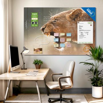 Die banjado Glas Magnettafel mit dem Motiv Motiv Löwin verbindet Funktionalität mit Stil. Sie ersetzt das Zettelchaos durch klare Strukturen und bringt dabei eine warme, natürliche Atmosphäre in Ihr Zuhause. Ob im Büro, in der Küche oder im Eingangsbereich - dieses Design-Board zieht Blicke an und sorgt für Ordnung mit Charakter.