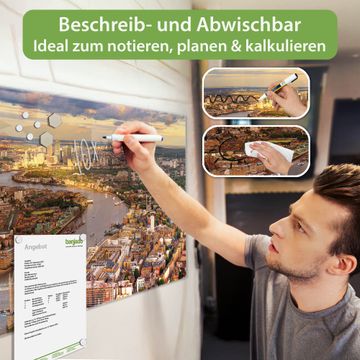 Die banjado Glas Magnettafel mit dem Motiv Motiv London verbindet Funktionalität mit Stil. Sie ersetzt das Zettelchaos durch klare Strukturen und bringt dabei eine warme, natürliche Atmosphäre in Ihr Zuhause. Ob im Büro, in der Küche oder im Eingangsbereich - dieses Design-Board zieht Blicke an und sorgt für Ordnung mit Charakter.