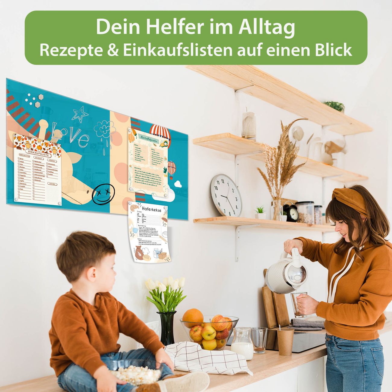 Auf der glatten Glasoberfläche lassen sich Termine, Rezepte oder Notizen ganz einfach mit Kreidestiften festhalten und rückstandslos entfernen. Starke Neodym-Magnete halten Ihre wichtigsten Erinnerungen sicher an Ort und Stelle. So entsteht Ihre ganz persönliche Ideenwand - jeden Tag neu.
