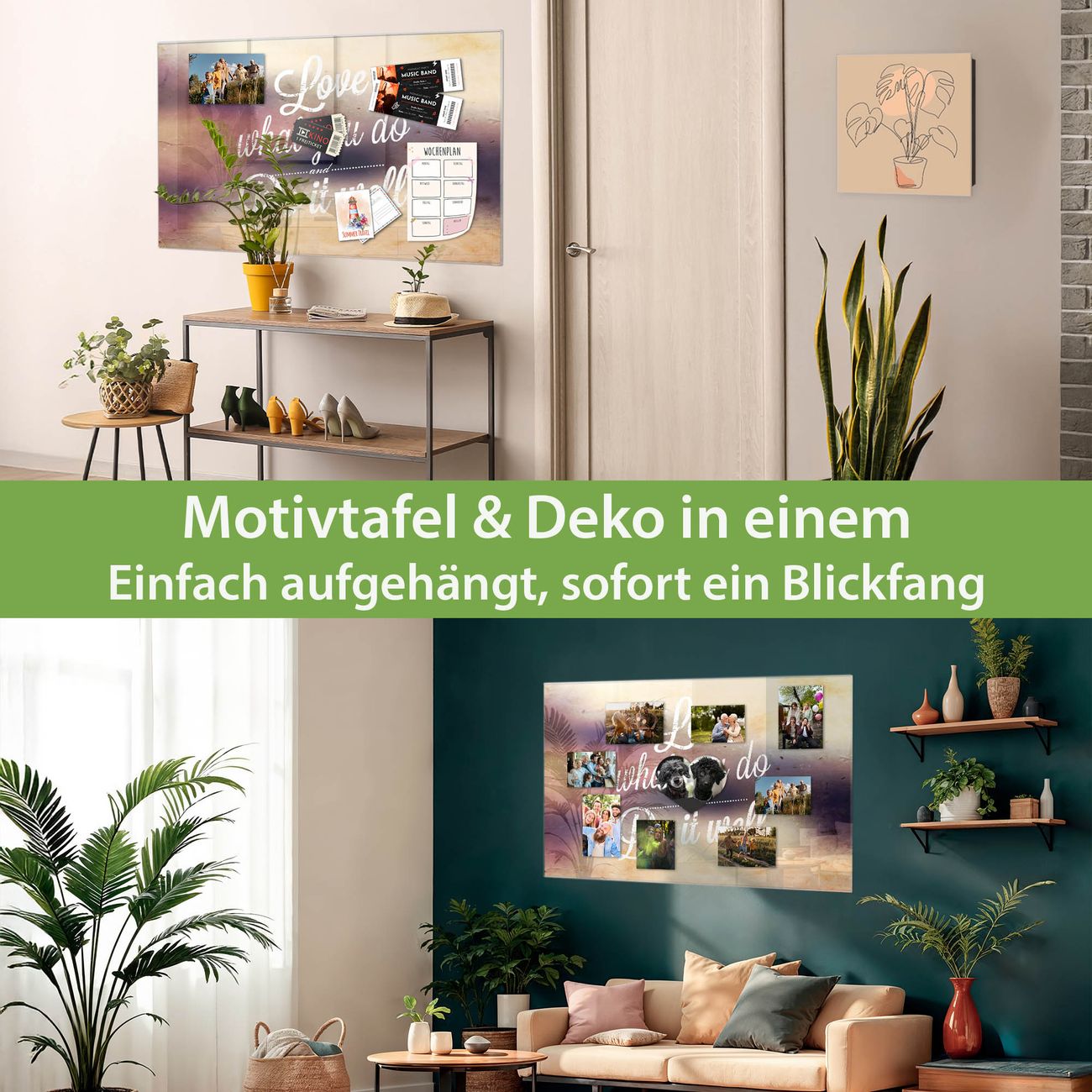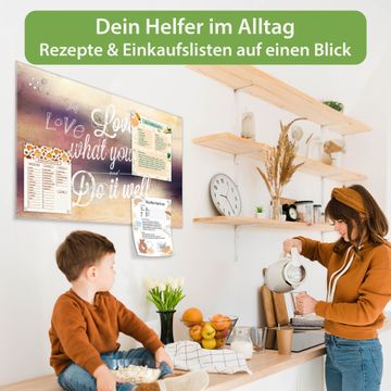Die banjado Glas Magnettafel mit dem Motiv Motiv Love What You Do verbindet Funktionalität mit Stil. Sie ersetzt das Zettelchaos durch klare Strukturen und bringt dabei eine warme, natürliche Atmosphäre in Ihr Zuhause. Ob im Büro, in der Küche oder im Eingangsbereich - dieses Design-Board zieht Blicke an und sorgt für Ordnung mit Charakter.