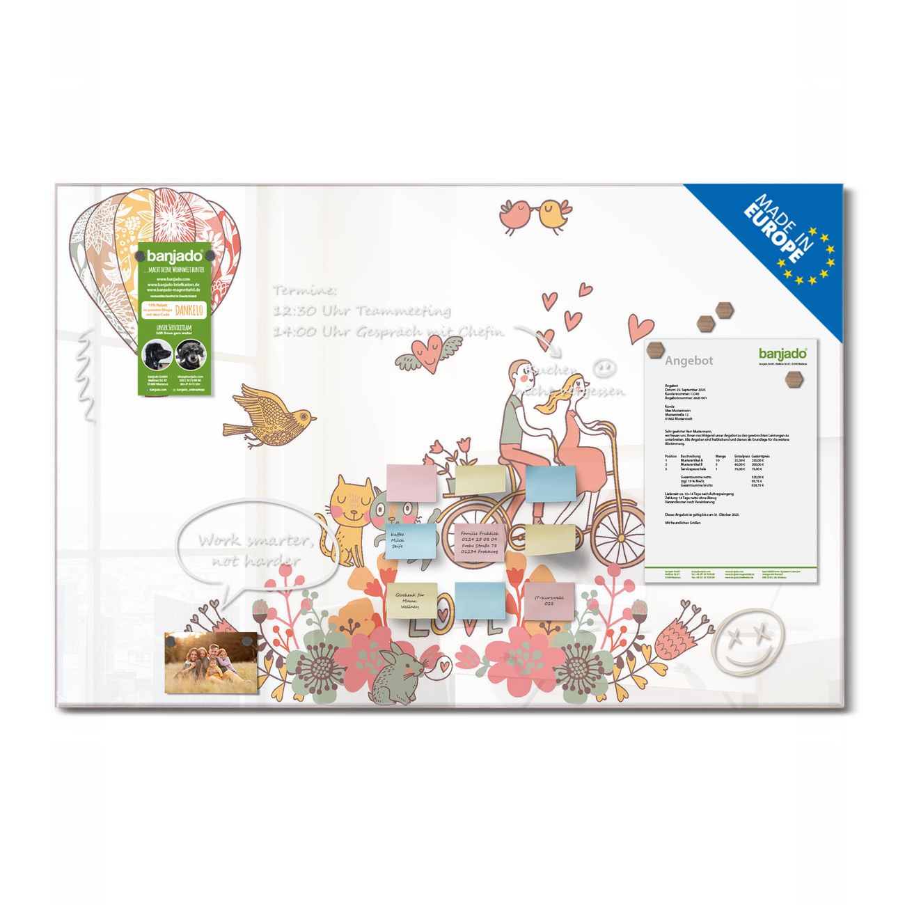 Die banjado Glas Magnettafel mit dem Motiv Motiv Love verbindet Funktionalität mit Stil. Sie ersetzt das Zettelchaos durch klare Strukturen und bringt dabei eine warme, natürliche Atmosphäre in Ihr Zuhause. Ob im Büro, in der Küche oder im Eingangsbereich - dieses Design-Board zieht Blicke an und sorgt für Ordnung mit Charakter.