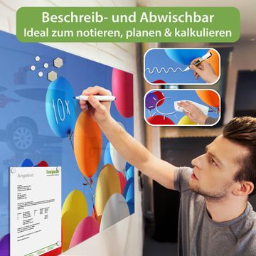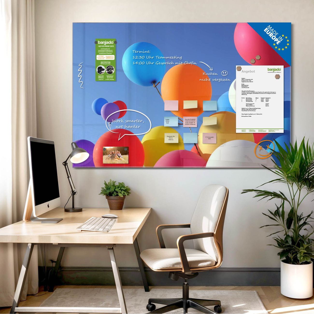 Die banjado Glas Magnettafel mit dem Motiv Motiv Luftballons verbindet Funktionalität mit Stil. Sie ersetzt das Zettelchaos durch klare Strukturen und bringt dabei eine warme, natürliche Atmosphäre in Ihr Zuhause. Ob im Büro, in der Küche oder im Eingangsbereich - dieses Design-Board zieht Blicke an und sorgt für Ordnung mit Charakter.