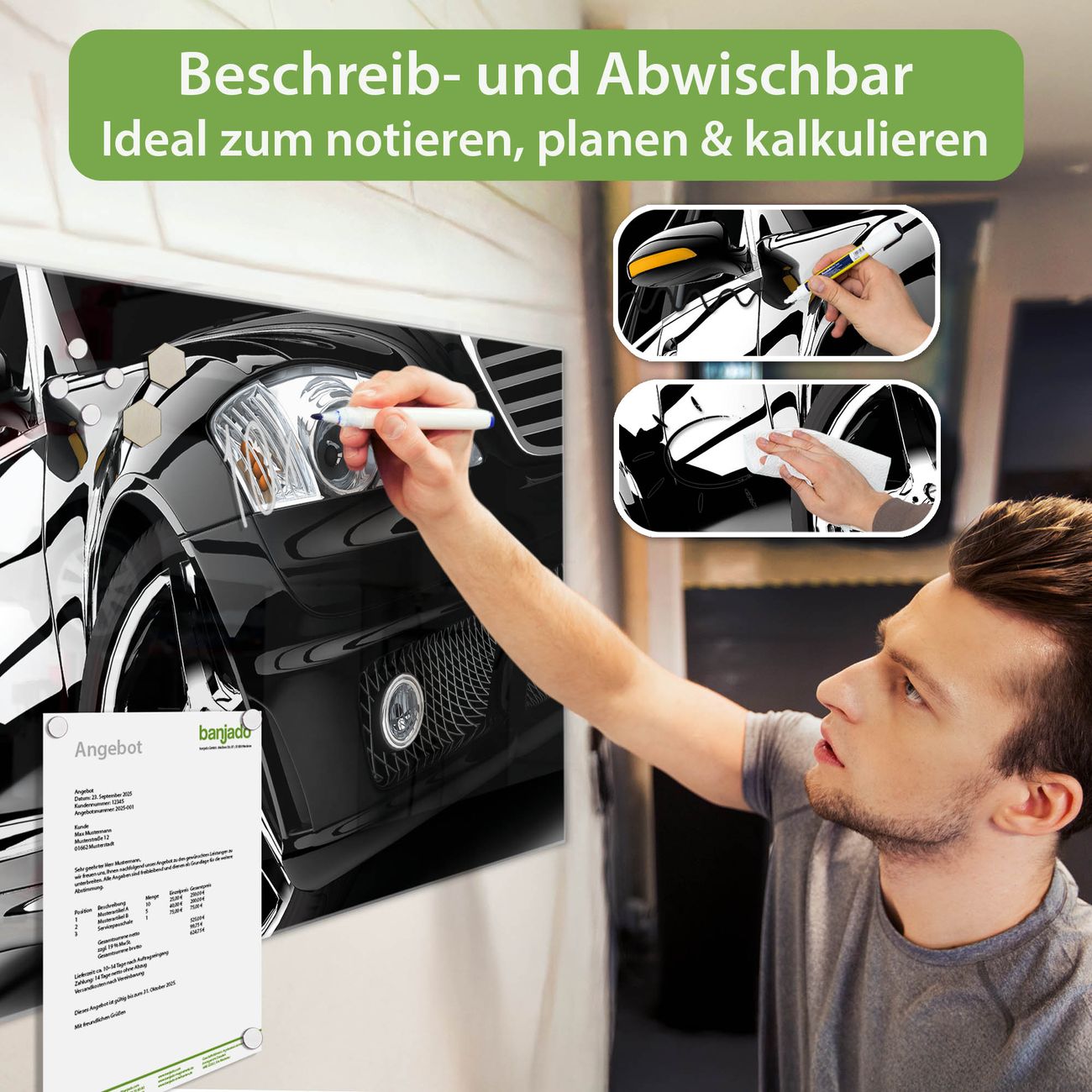Jede Glas Magnettafel wird in unserer Werkstatt von Hand gefertigt und sorgfältig geprüft. So erhalten Sie ein echtes Qualitätsprodukt, das Funktion und Ästhetik perfekt vereint.?? Warum banjado?