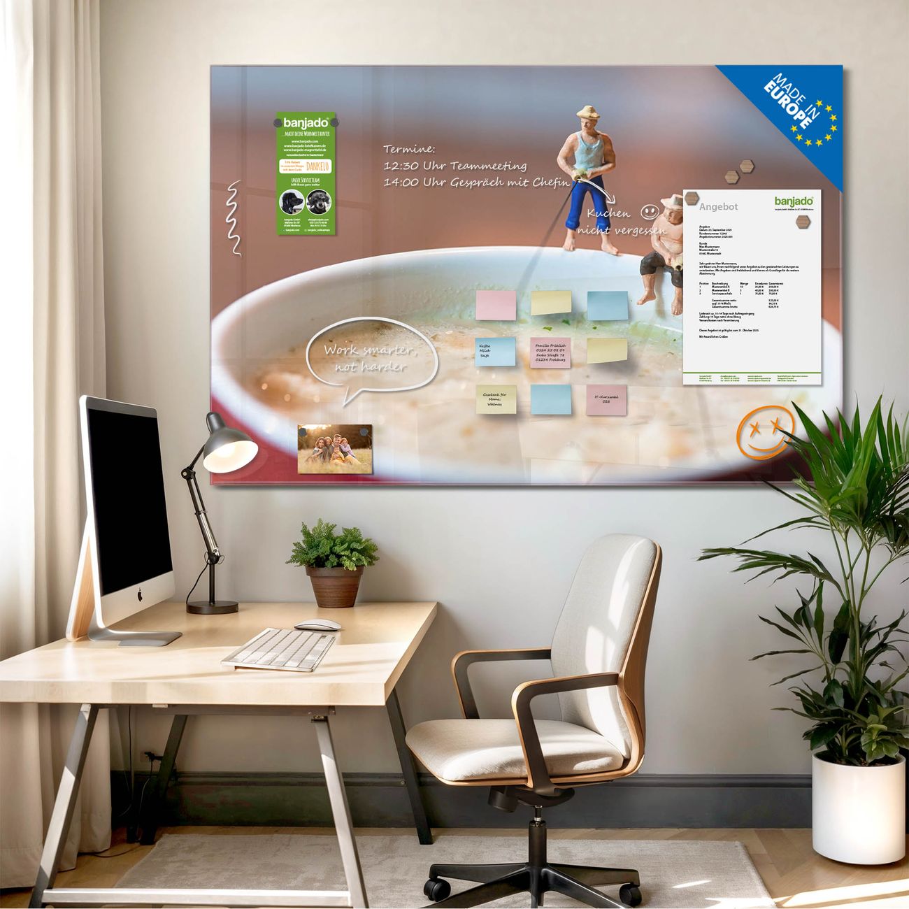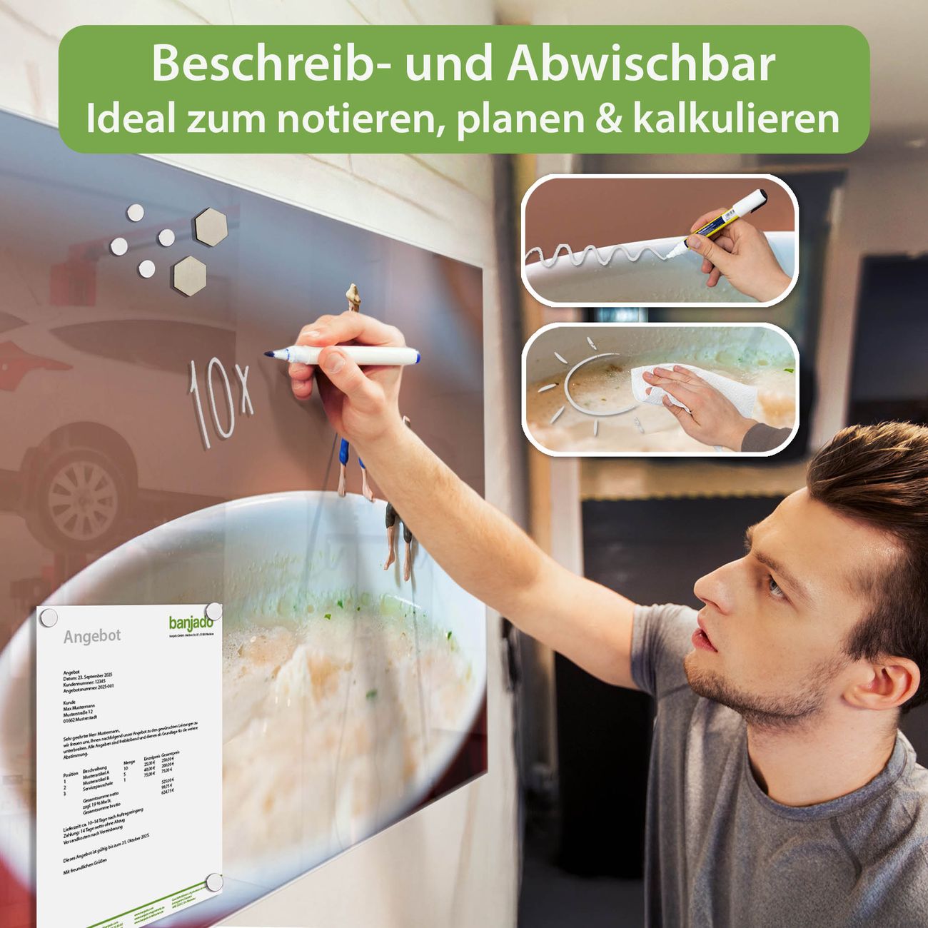 Jede Glas Magnettafel wird in unserer Werkstatt von Hand gefertigt und sorgfältig geprüft. So erhalten Sie ein echtes Qualitätsprodukt, das Funktion und Ästhetik perfekt vereint.?? Warum banjado?