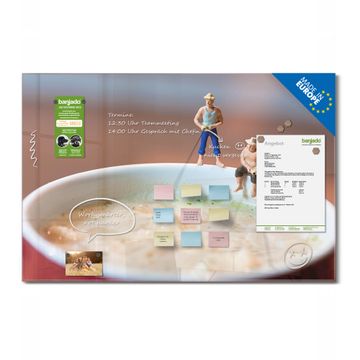 Auf der glatten Glasoberfläche lassen sich Termine, Rezepte oder Notizen ganz einfach mit Kreidestiften festhalten und rückstandslos entfernen. Starke Neodym-Magnete halten Ihre wichtigsten Erinnerungen sicher an Ort und Stelle. So entsteht Ihre ganz persönliche Ideenwand - jeden Tag neu.