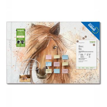 Die banjado Glas Magnettafel mit dem Motiv Motiv Magic Horse verbindet Funktionalität mit Stil. Sie ersetzt das Zettelchaos durch klare Strukturen und bringt dabei eine warme, natürliche Atmosphäre in Ihr Zuhause. Ob im Büro, in der Küche oder im Eingangsbereich - dieses Design-Board zieht Blicke an und sorgt für Ordnung mit Charakter.