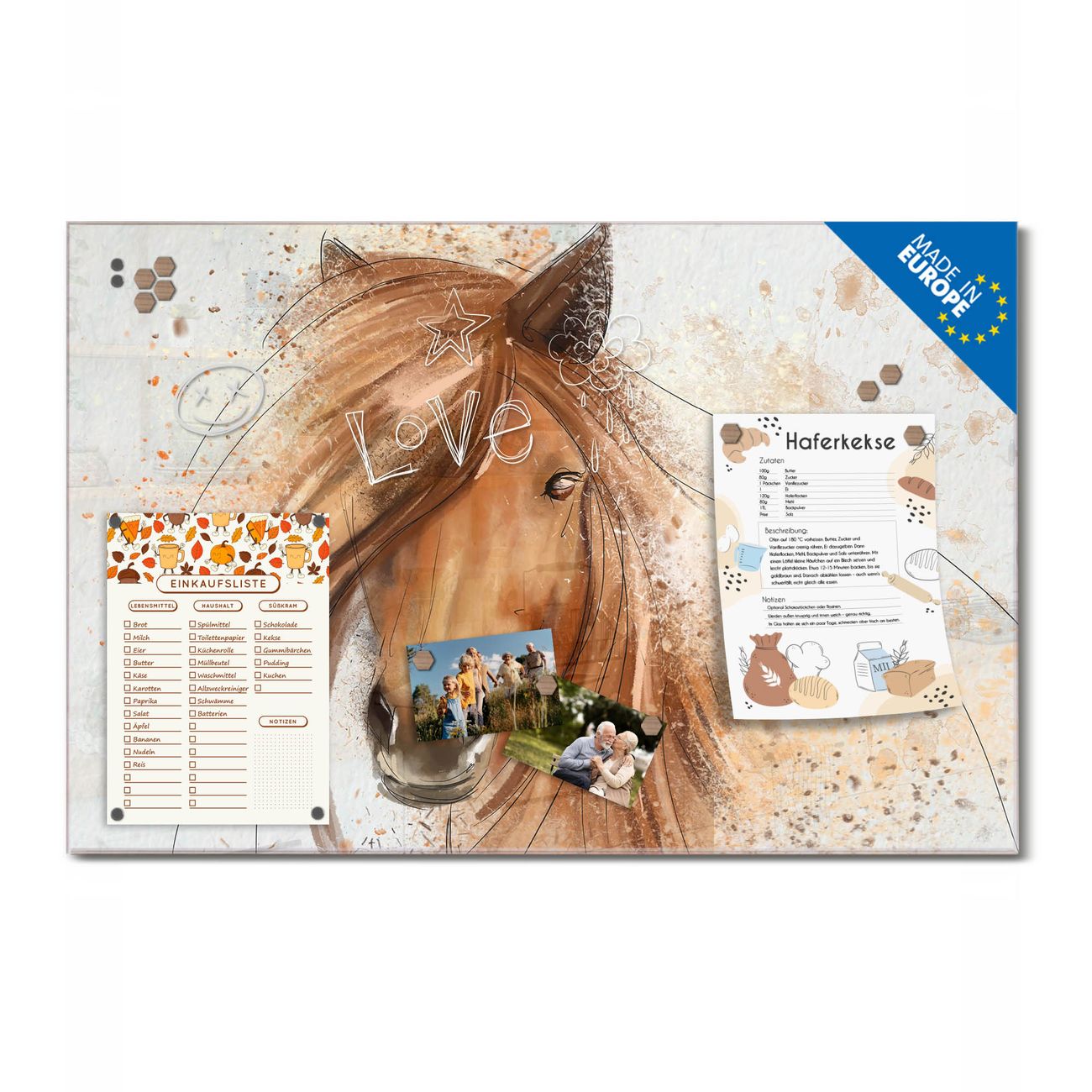 Ein Stück Design, das Ihren Alltag organisiert. Schreiben, heften, inspirieren - alles an einem Ort. Qualität, die man spürt. Montage leicht gemacht. Handwerk mit Herz - veredelt in Sachsen. Einzigartiges Design mit Motiv Motiv Magic Horse Beschreibbare Glasoberfläche, leicht zu reinigen Starke Magnetkraft durch Stahlrückwand Inklusive 4 Neodym-Magneten Flexible Montageoptionen Handveredelt in Sachsen - Qualität, die bleibt