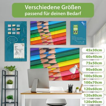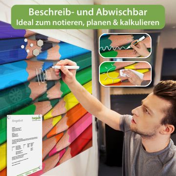 Die banjado Glas Magnettafel mit dem Motiv Motiv Malstifte verbindet Funktionalität mit Stil. Sie ersetzt das Zettelchaos durch klare Strukturen und bringt dabei eine warme, natürliche Atmosphäre in Ihr Zuhause. Ob im Büro, in der Küche oder im Eingangsbereich - dieses Design-Board zieht Blicke an und sorgt für Ordnung mit Charakter.