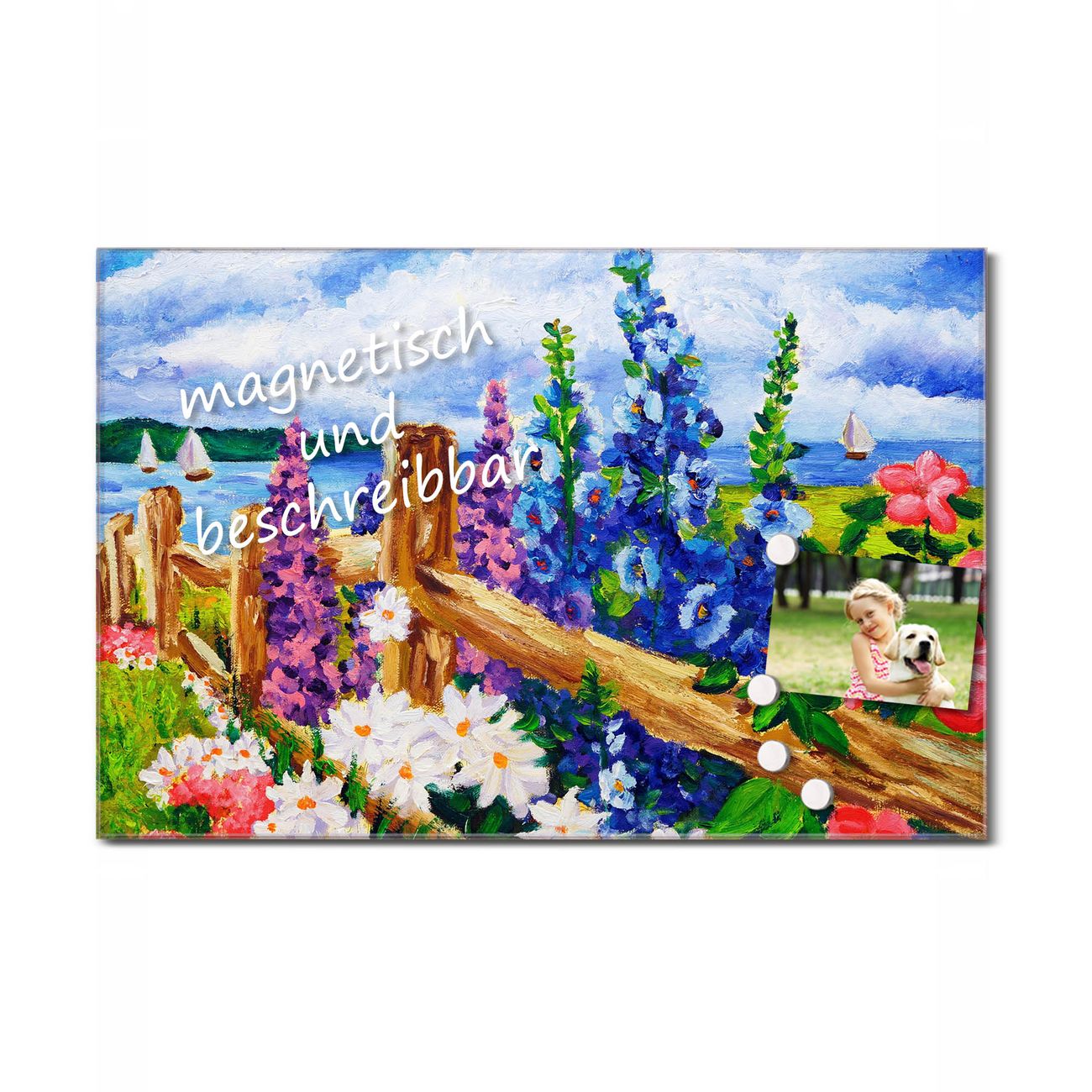 Glas Magnettafel im Querformat Malve Am See