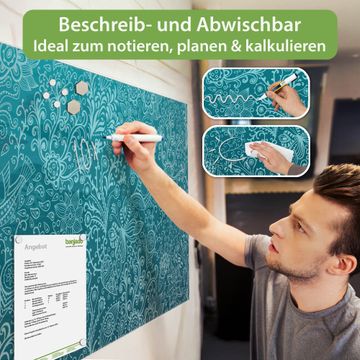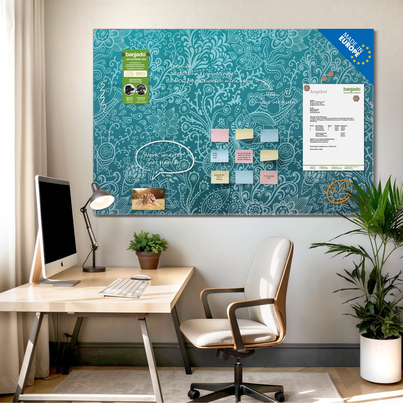 Die banjado Glas Magnettafel mit dem Motiv Motiv Mandala Landschaft verbindet Funktionalität mit Stil. Sie ersetzt das Zettelchaos durch klare Strukturen und bringt dabei eine warme, natürliche Atmosphäre in Ihr Zuhause. Ob im Büro, in der Küche oder im Eingangsbereich - dieses Design-Board zieht Blicke an und sorgt für Ordnung mit Charakter.