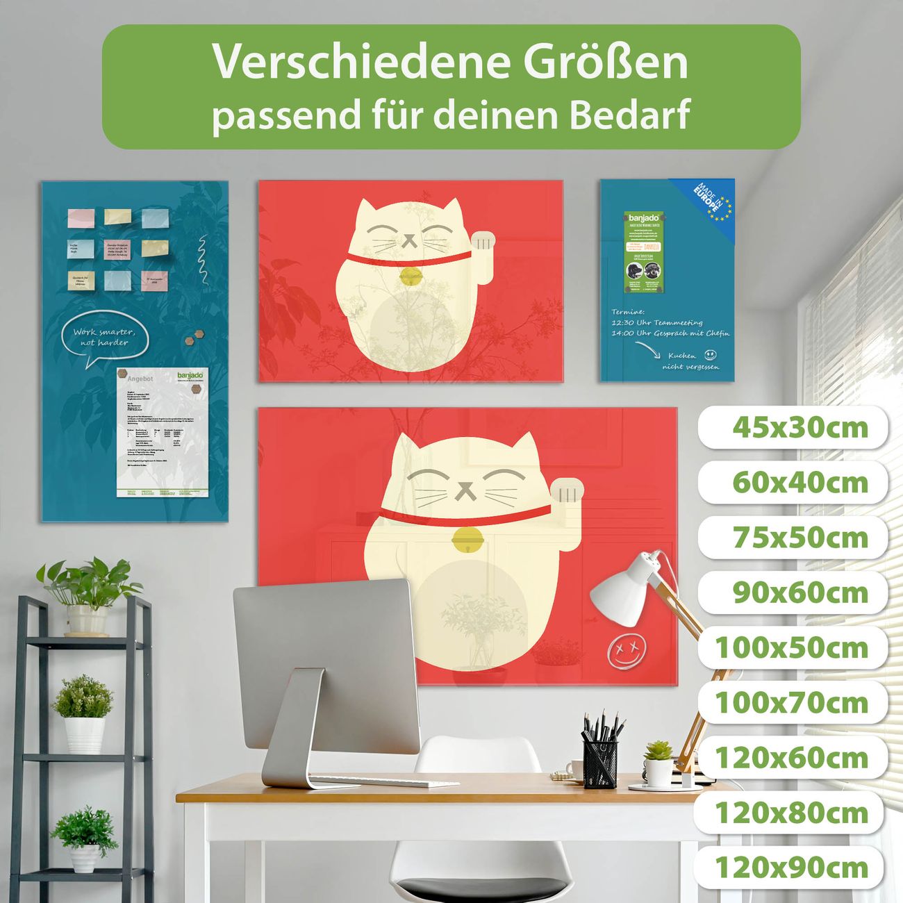 Jede Glas Magnettafel wird in unserer Werkstatt von Hand gefertigt und sorgfältig geprüft. So erhalten Sie ein echtes Qualitätsprodukt, das Funktion und Ästhetik perfekt vereint.?? Warum banjado?
