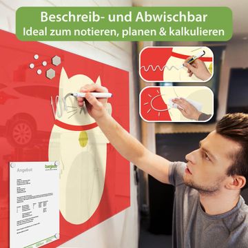 Auf der glatten Glasoberfläche lassen sich Termine, Rezepte oder Notizen ganz einfach mit Kreidestiften festhalten und rückstandslos entfernen. Starke Neodym-Magnete halten Ihre wichtigsten Erinnerungen sicher an Ort und Stelle. So entsteht Ihre ganz persönliche Ideenwand - jeden Tag neu.