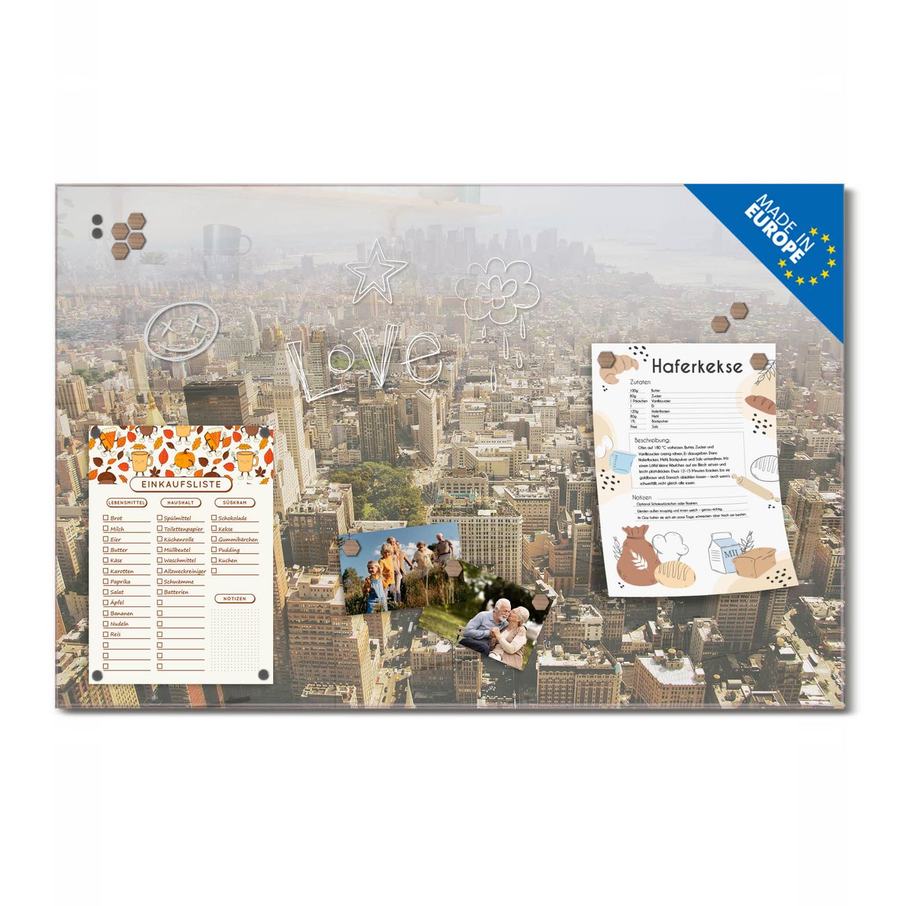 Ein Stück Design, das Ihren Alltag organisiert. Schreiben, heften, inspirieren - alles an einem Ort. Qualität, die man spürt. Montage leicht gemacht. Handwerk mit Herz - veredelt in Sachsen. Einzigartiges Design mit Motiv Motiv Manhattan 1 Beschreibbare Glasoberfläche, leicht zu reinigen Starke Magnetkraft durch Stahlrückwand Inklusive 4 Neodym-Magneten Flexible Montageoptionen Handveredelt in Sachsen - Qualität, die bleibt