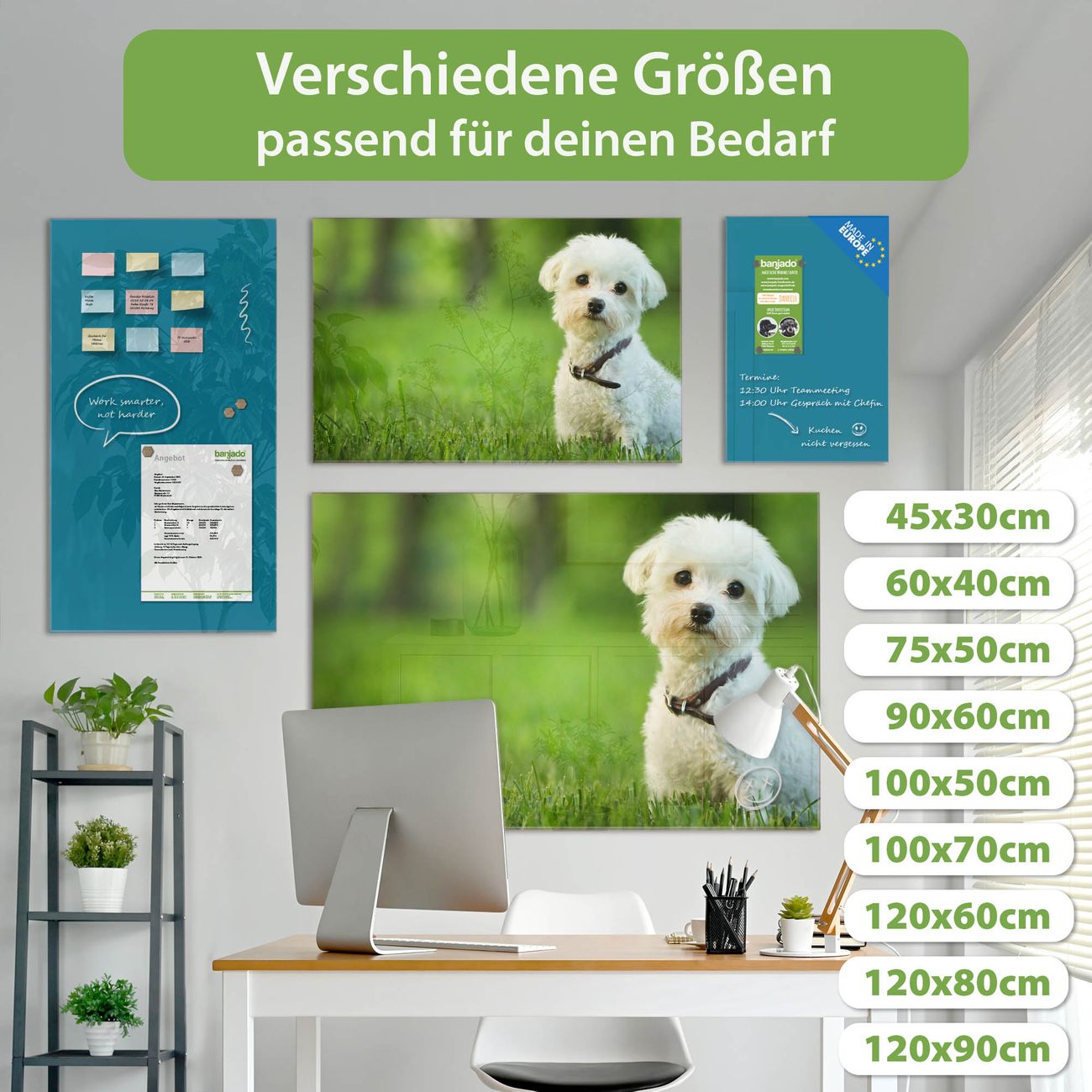 Jede Glas Magnettafel wird in unserer Werkstatt von Hand gefertigt und sorgfältig geprüft. So erhalten Sie ein echtes Qualitätsprodukt, das Funktion und Ästhetik perfekt vereint.?? Warum banjado?