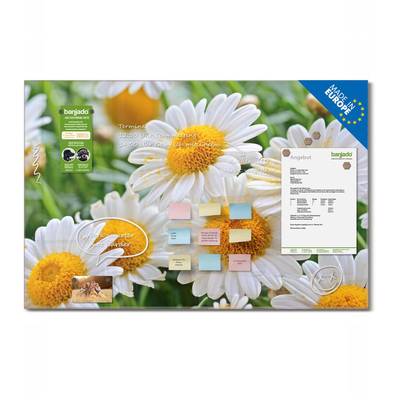 Glas Magnettafel im Querformat Motiv Margeriten Illustration