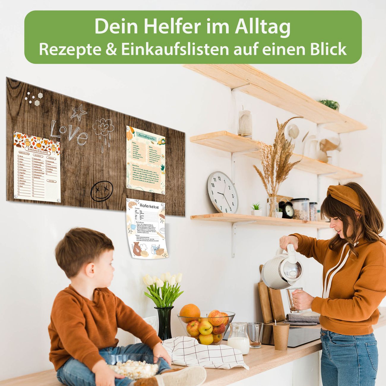 Auf der glatten Glasoberfläche lassen sich Termine, Rezepte oder Notizen ganz einfach mit Kreidestiften festhalten und rückstandslos entfernen. Starke Neodym-Magnete halten Ihre wichtigsten Erinnerungen sicher an Ort und Stelle. So entsteht Ihre ganz persönliche Ideenwand - jeden Tag neu.
