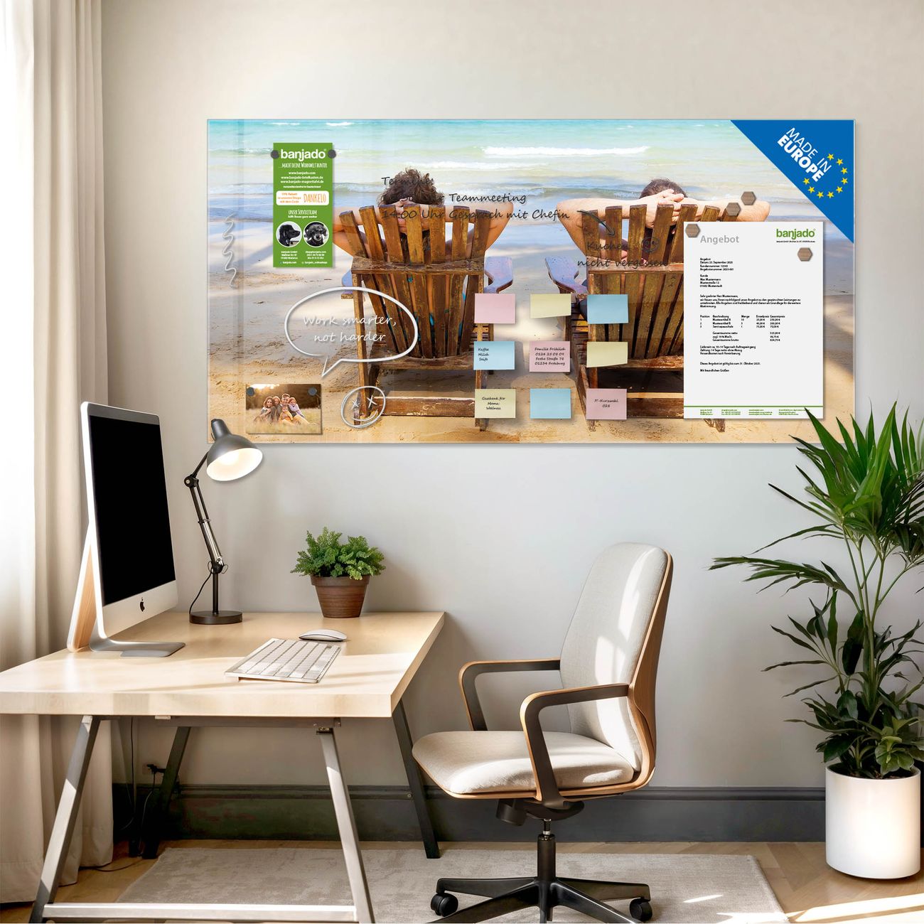 Jede Glas Magnettafel wird in unserer Werkstatt von Hand gefertigt und sorgfältig geprüft. So erhalten Sie ein echtes Qualitätsprodukt, das Funktion und Ästhetik perfekt vereint.?? Warum banjado?