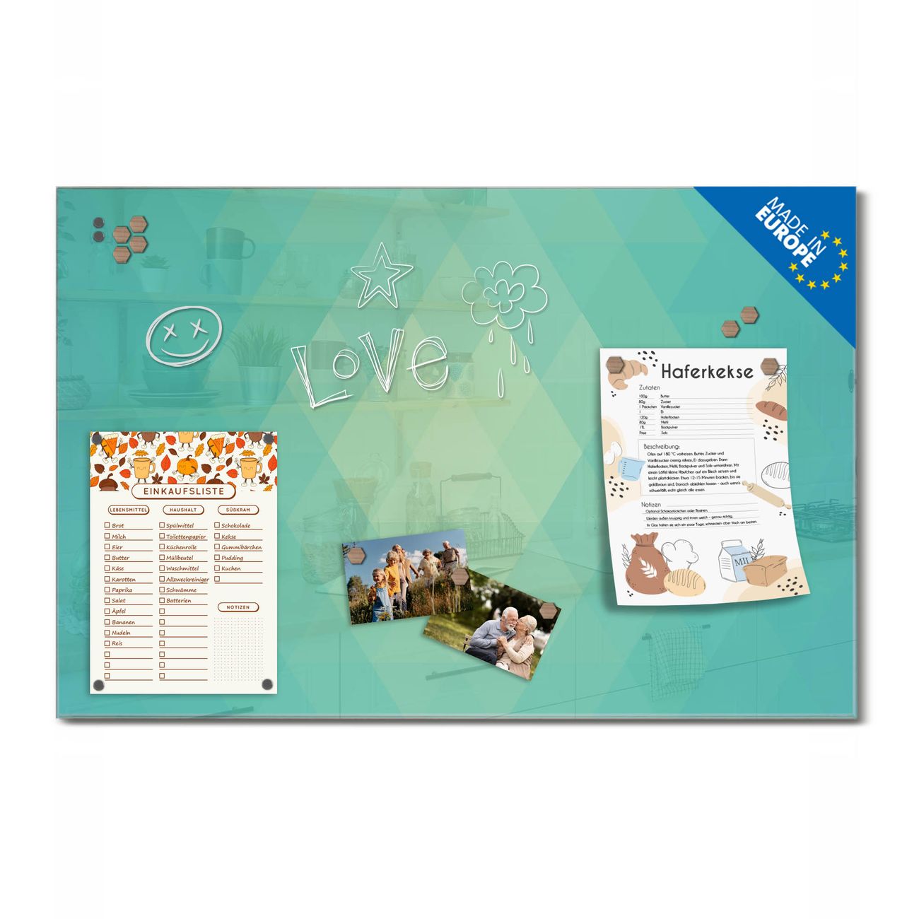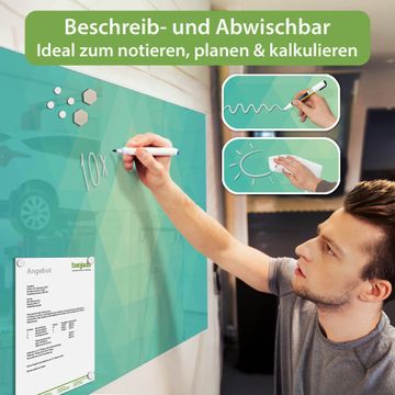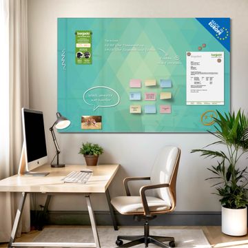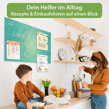 Auf der glatten Glasoberfläche lassen sich Termine, Rezepte oder Notizen ganz einfach mit Kreidestiften festhalten und rückstandslos entfernen. Starke Neodym-Magnete halten Ihre wichtigsten Erinnerungen sicher an Ort und Stelle. So entsteht Ihre ganz persönliche Ideenwand - jeden Tag neu.
