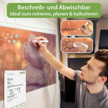 Die banjado Glas Magnettafel mit dem Motiv Motiv Mein Ort verbindet Funktionalität mit Stil. Sie ersetzt das Zettelchaos durch klare Strukturen und bringt dabei eine warme, natürliche Atmosphäre in Ihr Zuhause. Ob im Büro, in der Küche oder im Eingangsbereich - dieses Design-Board zieht Blicke an und sorgt für Ordnung mit Charakter.