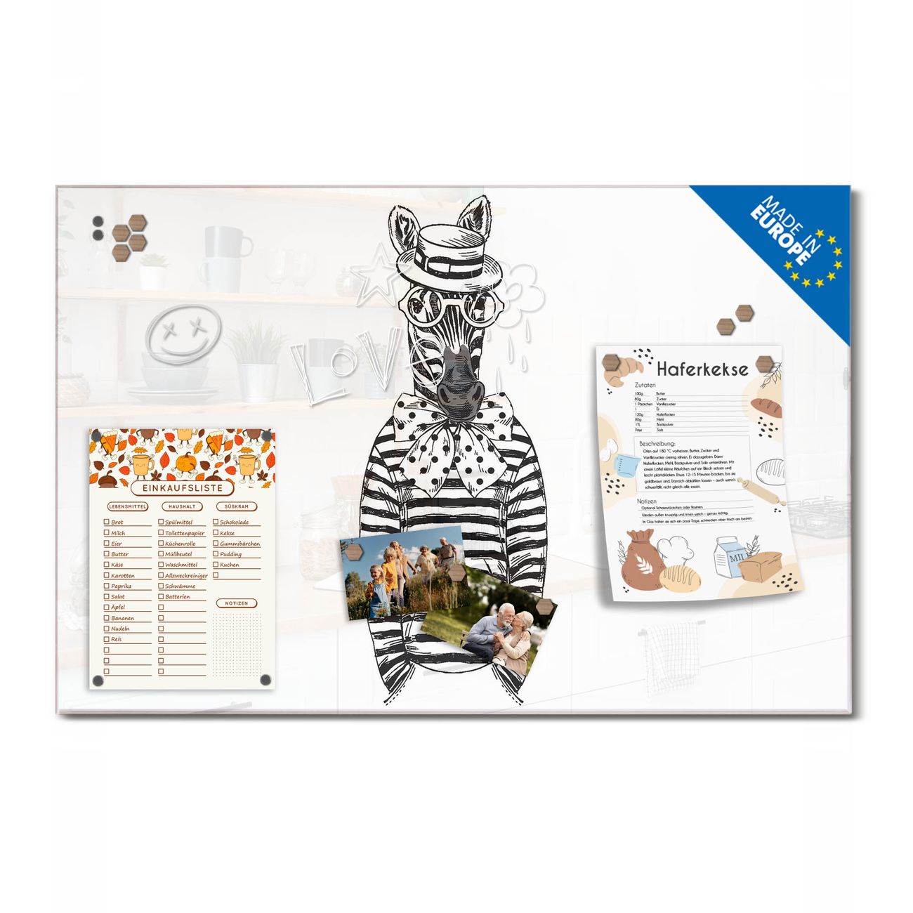 Ein Stück Design, das Ihren Alltag organisiert. Schreiben, heften, inspirieren - alles an einem Ort. Qualität, die man spürt. Montage leicht gemacht. Handwerk mit Herz - veredelt in Sachsen. Einzigartiges Design mit Motiv Motiv Michael Stripes Beschreibbare Glasoberfläche, leicht zu reinigen Starke Magnetkraft durch Stahlrückwand Inklusive 4 Neodym-Magneten Flexible Montageoptionen Handveredelt in Sachsen - Qualität, die bleibt