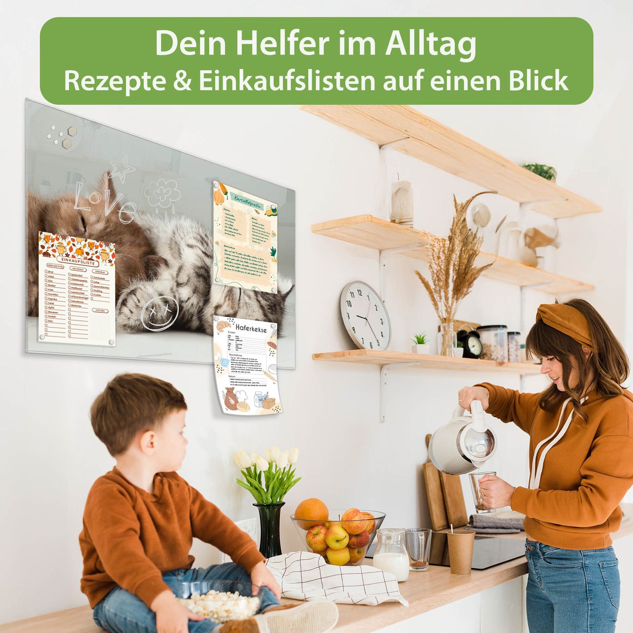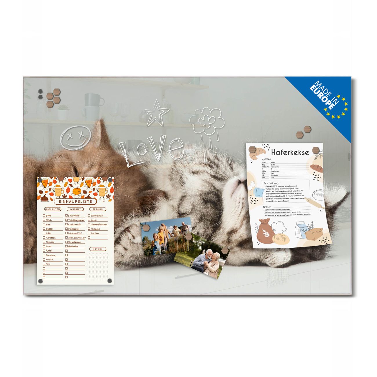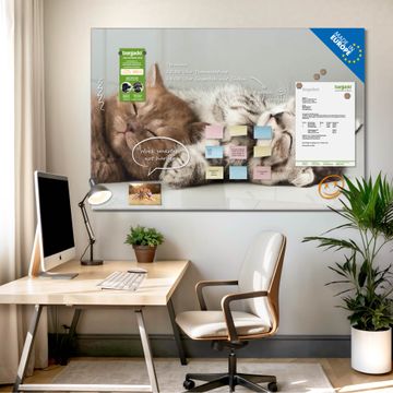 Auf der glatten Glasoberfläche lassen sich Termine, Rezepte oder Notizen ganz einfach mit Kreidestiften festhalten und rückstandslos entfernen. Starke Neodym-Magnete halten Ihre wichtigsten Erinnerungen sicher an Ort und Stelle. So entsteht Ihre ganz persönliche Ideenwand - jeden Tag neu.
