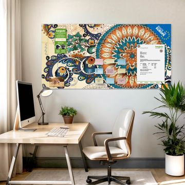 Die banjado Glas Magnettafel mit dem Motiv Motiv Modernes Mandala verbindet Funktionalität mit Stil. Sie ersetzt das Zettelchaos durch klare Strukturen und bringt dabei eine warme, natürliche Atmosphäre in Ihr Zuhause. Ob im Büro, in der Küche oder im Eingangsbereich - dieses Design-Board zieht Blicke an und sorgt für Ordnung mit Charakter.