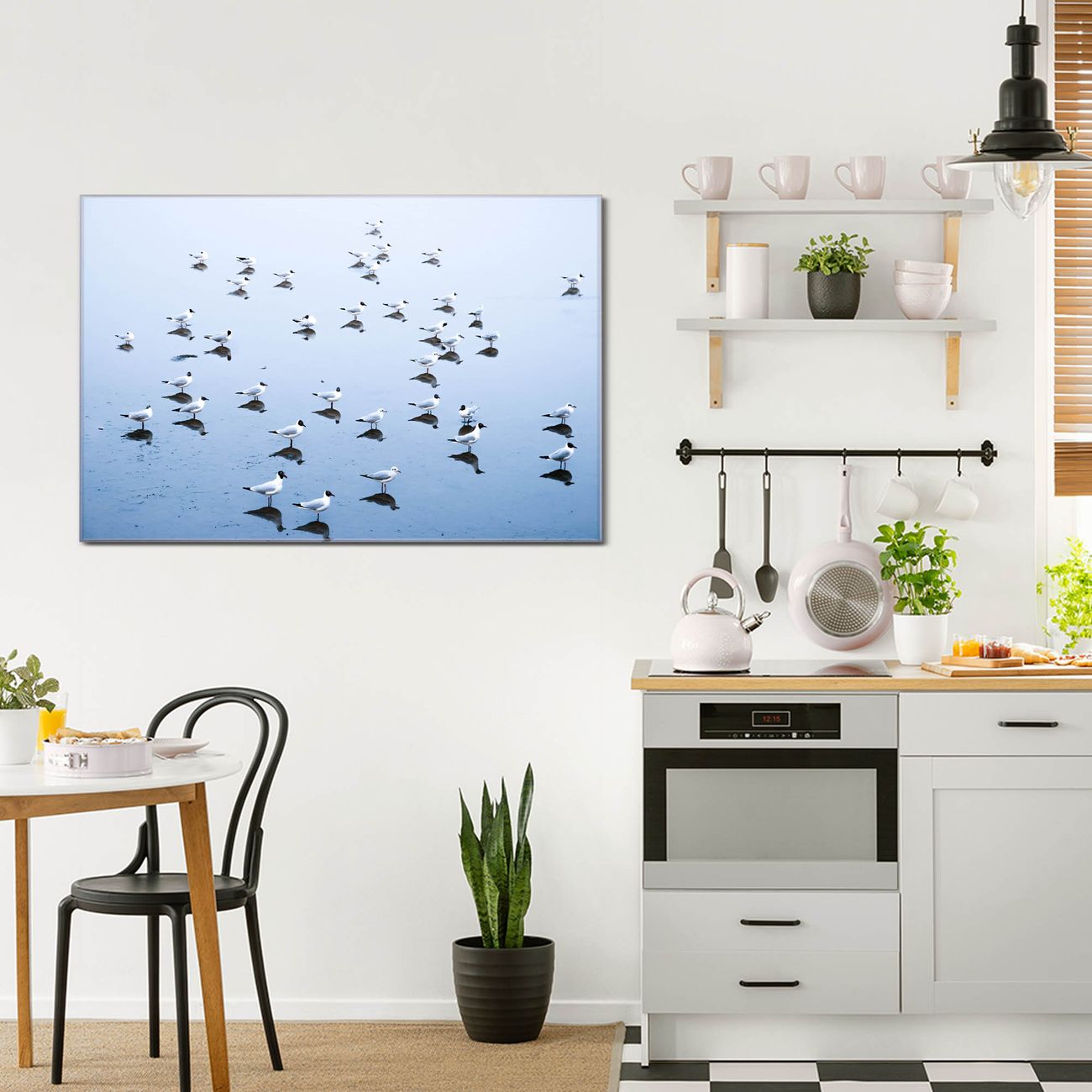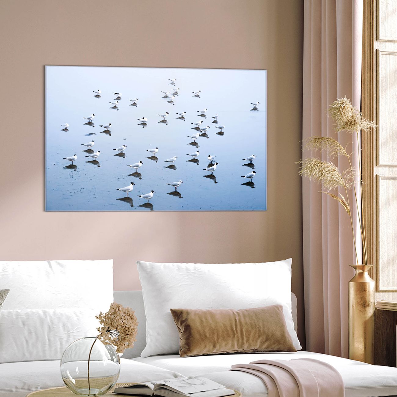 Glas Magnettafel im Querformat Möwenschwarm