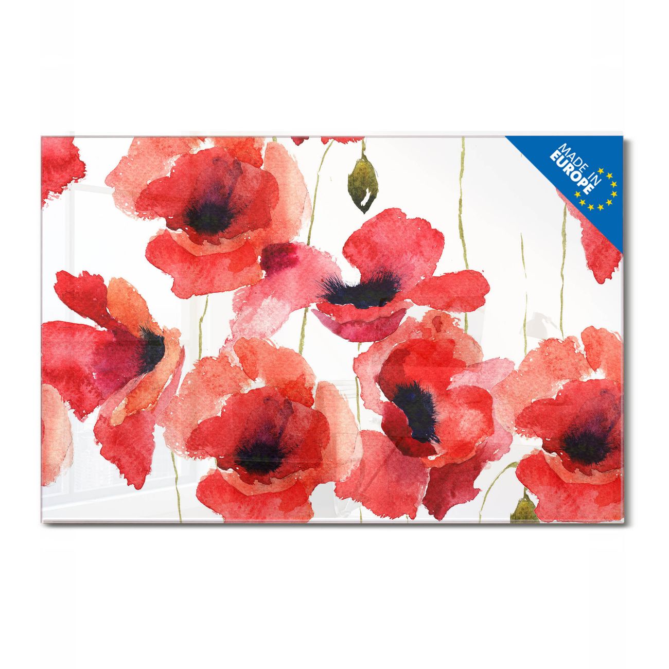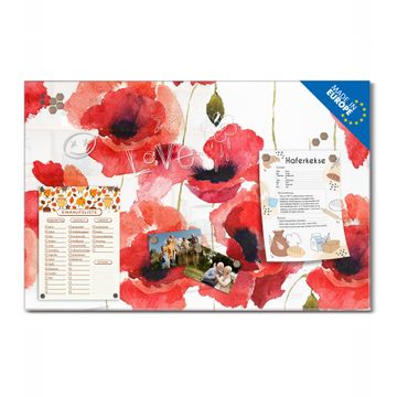 Glas Magnettafel im Querformat Motiv Mohn Aquarell