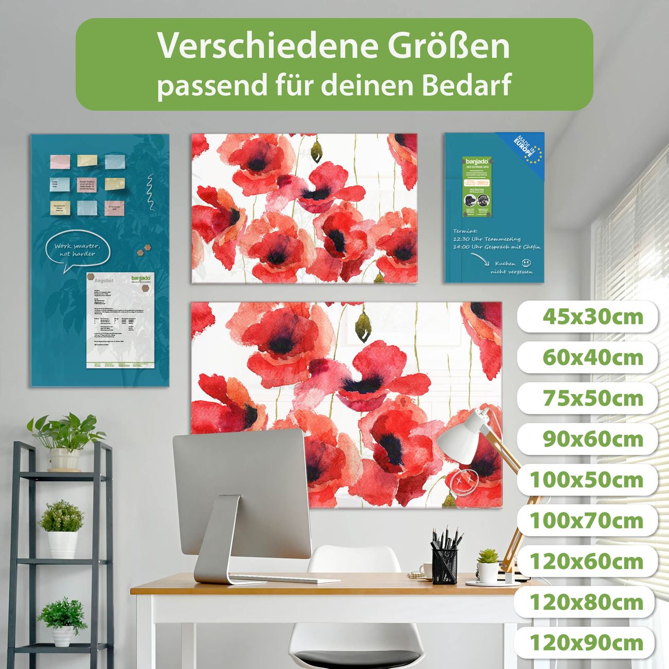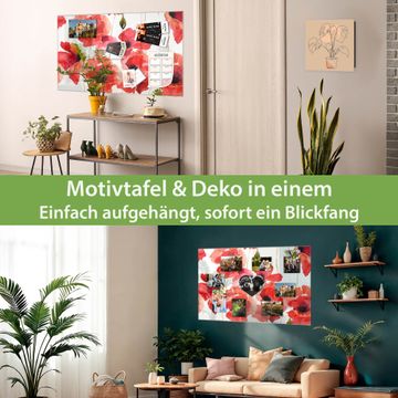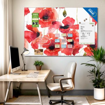 Die banjado Glas Magnettafel mit dem Motiv Motiv Mohn Aquarell verbindet Funktionalität mit Stil. Sie ersetzt das Zettelchaos durch klare Strukturen und bringt dabei eine warme, natürliche Atmosphäre in Ihr Zuhause. Ob im Büro, in der Küche oder im Eingangsbereich - dieses Design-Board zieht Blicke an und sorgt für Ordnung mit Charakter.