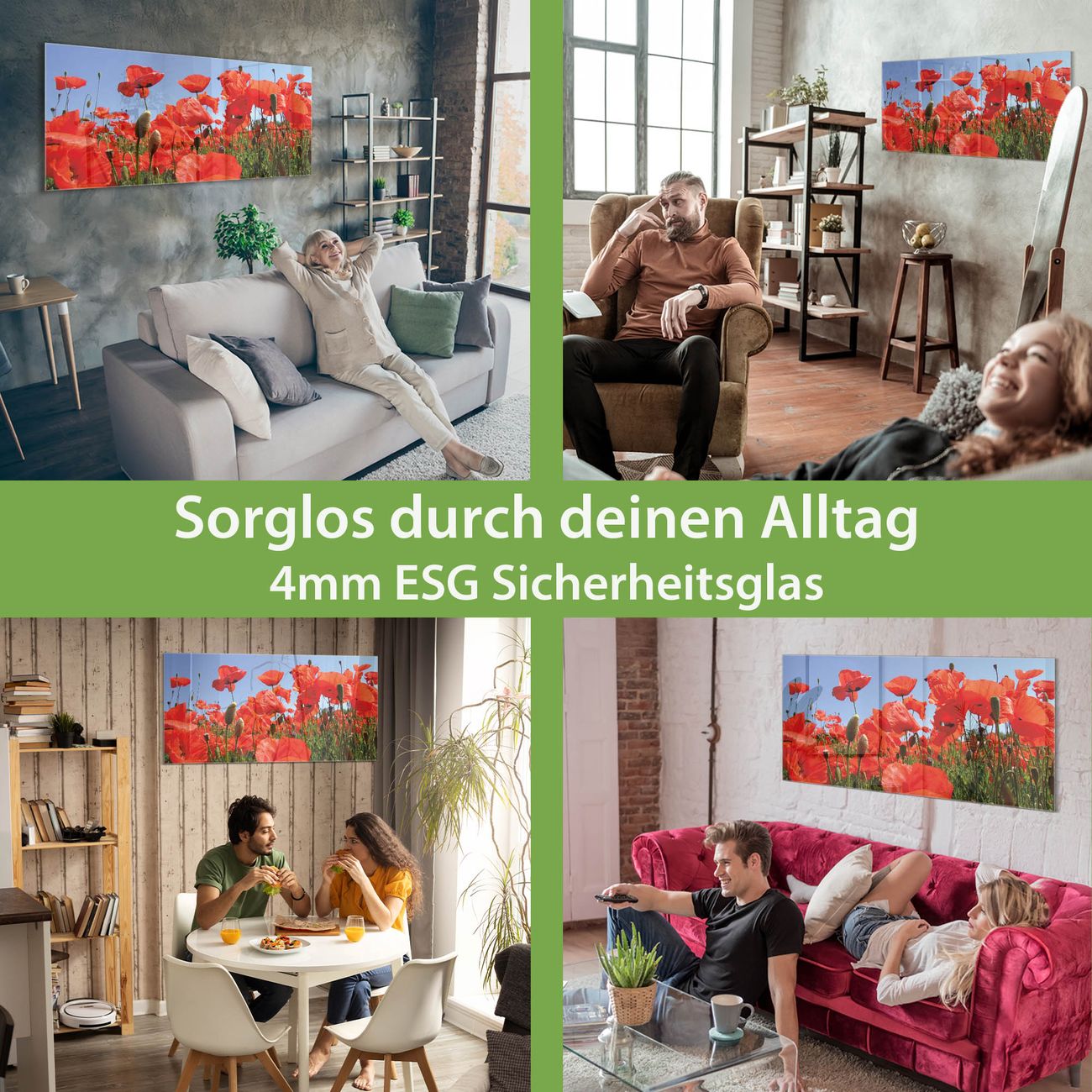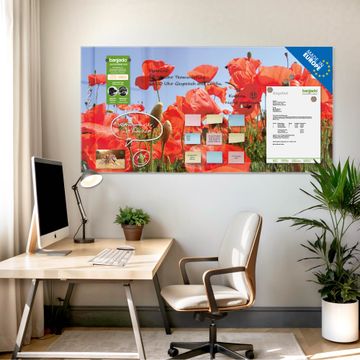 Glas Magnettafel im Querformat Motiv Mohnblumen