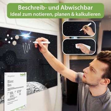 Die banjado Glas Magnettafel mit dem Motiv Motiv Mondlandschaft verbindet Funktionalität mit Stil. Sie ersetzt das Zettelchaos durch klare Strukturen und bringt dabei eine warme, natürliche Atmosphäre in Ihr Zuhause. Ob im Büro, in der Küche oder im Eingangsbereich - dieses Design-Board zieht Blicke an und sorgt für Ordnung mit Charakter.