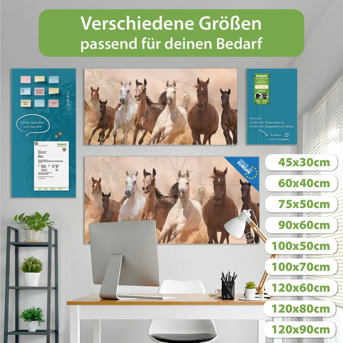 Jede Glas Magnettafel wird in unserer Werkstatt von Hand gefertigt und sorgfältig geprüft. So erhalten Sie ein echtes Qualitätsprodukt, das Funktion und Ästhetik perfekt vereint.?? Warum banjado?