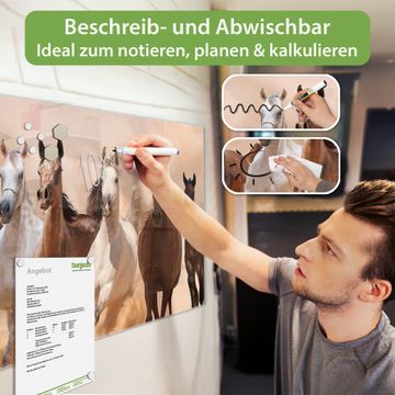 Die banjado Glas Magnettafel mit dem Motiv Motiv Mongolische Stimmung verbindet Funktionalität mit Stil. Sie ersetzt das Zettelchaos durch klare Strukturen und bringt dabei eine warme, natürliche Atmosphäre in Ihr Zuhause. Ob im Büro, in der Küche oder im Eingangsbereich - dieses Design-Board zieht Blicke an und sorgt für Ordnung mit Charakter.