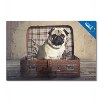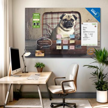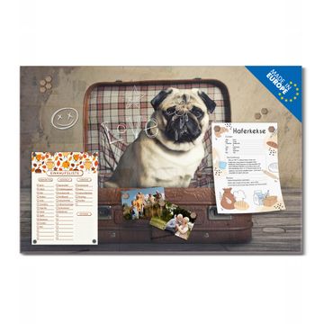 Glas Magnettafel im Querformat Motiv Mops im Koffer