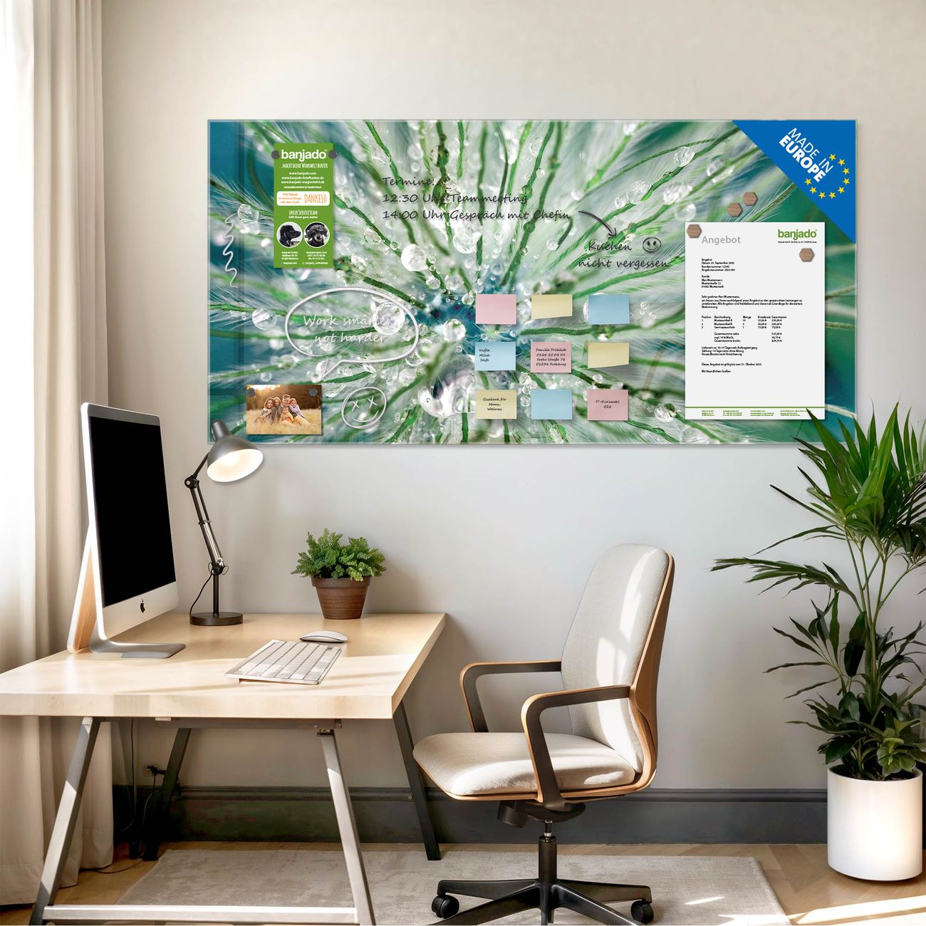 Die banjado Glas Magnettafel mit dem Motiv Motiv Blüte Mit Tautropfen verbindet Funktionalität mit Stil. Sie ersetzt das Zettelchaos durch klare Strukturen und bringt dabei eine warme, natürliche Atmosphäre in Ihr Zuhause. Ob im Büro, in der Küche oder im Eingangsbereich - dieses Design-Board zieht Blicke an und sorgt für Ordnung mit Charakter.