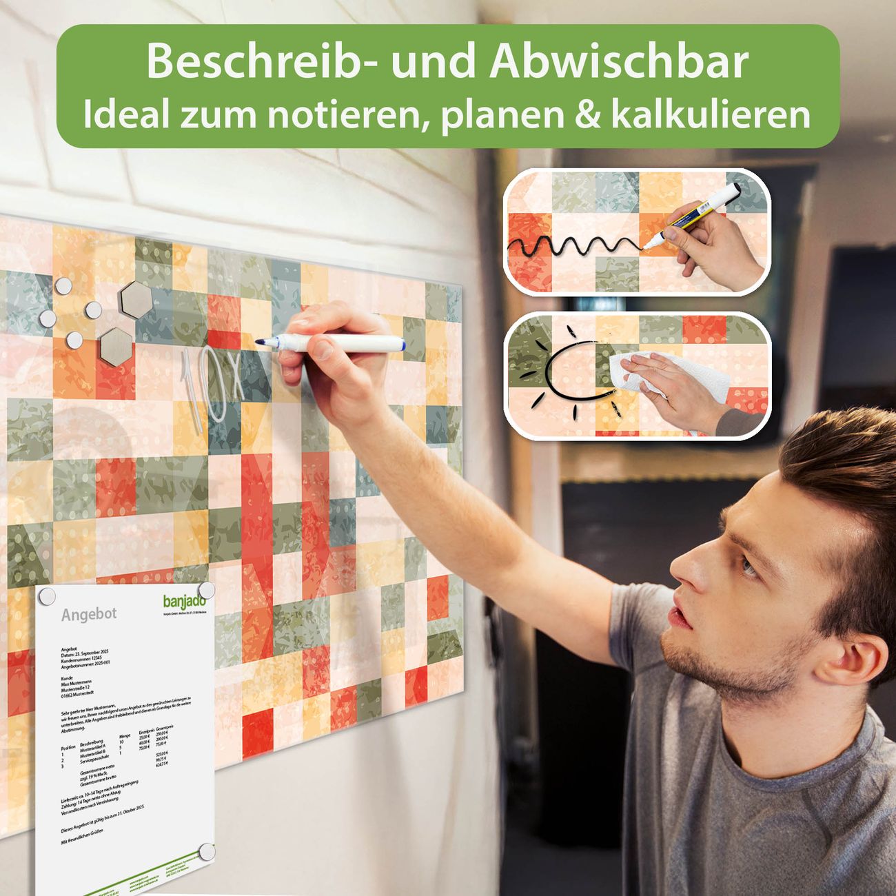 Die banjado Glas Magnettafel mit dem Motiv Motiv Mosaik Rot verbindet Funktionalität mit Stil. Sie ersetzt das Zettelchaos durch klare Strukturen und bringt dabei eine warme, natürliche Atmosphäre in Ihr Zuhause. Ob im Büro, in der Küche oder im Eingangsbereich - dieses Design-Board zieht Blicke an und sorgt für Ordnung mit Charakter.