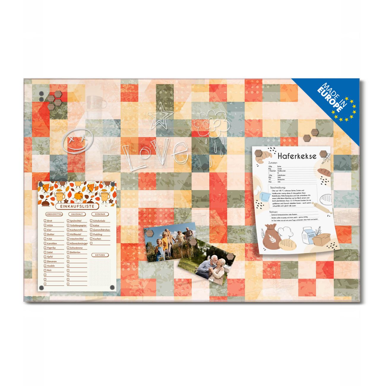 Ein Stück Design, das Ihren Alltag organisiert. Schreiben, heften, inspirieren - alles an einem Ort. Qualität, die man spürt. Montage leicht gemacht. Handwerk mit Herz - veredelt in Sachsen. Einzigartiges Design mit Motiv Motiv Mosaik Rot Beschreibbare Glasoberfläche, leicht zu reinigen Starke Magnetkraft durch Stahlrückwand Inklusive 4 Neodym-Magneten Flexible Montageoptionen Handveredelt in Sachsen - Qualität, die bleibt