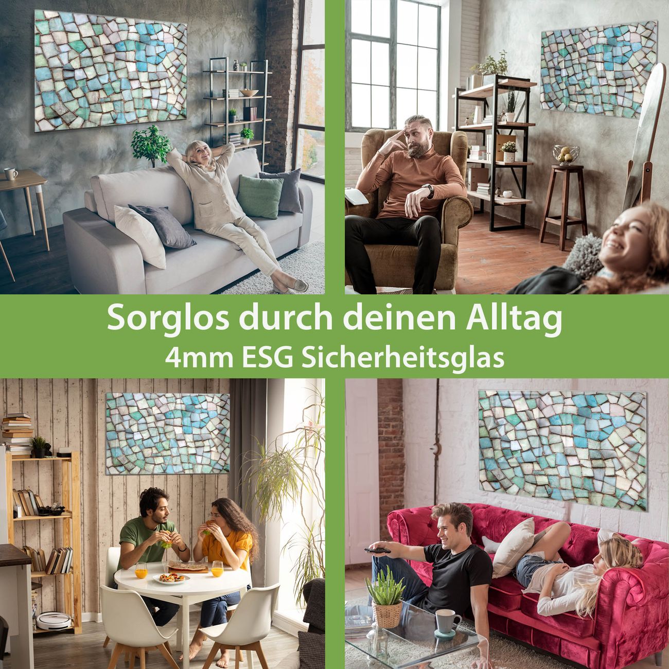 - Material: 4mm Sicherheitsglas mit Metallrückwand