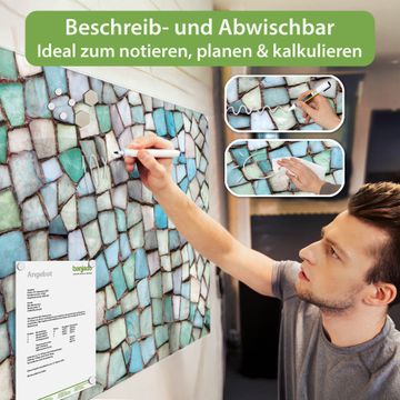 Die banjado Glas Magnettafel mit dem Motiv Motiv Mosaik Blau verbindet Funktionalität mit Stil. Sie ersetzt das Zettelchaos durch klare Strukturen und bringt dabei eine warme, natürliche Atmosphäre in Ihr Zuhause. Ob im Büro, in der Küche oder im Eingangsbereich - dieses Design-Board zieht Blicke an und sorgt für Ordnung mit Charakter.
