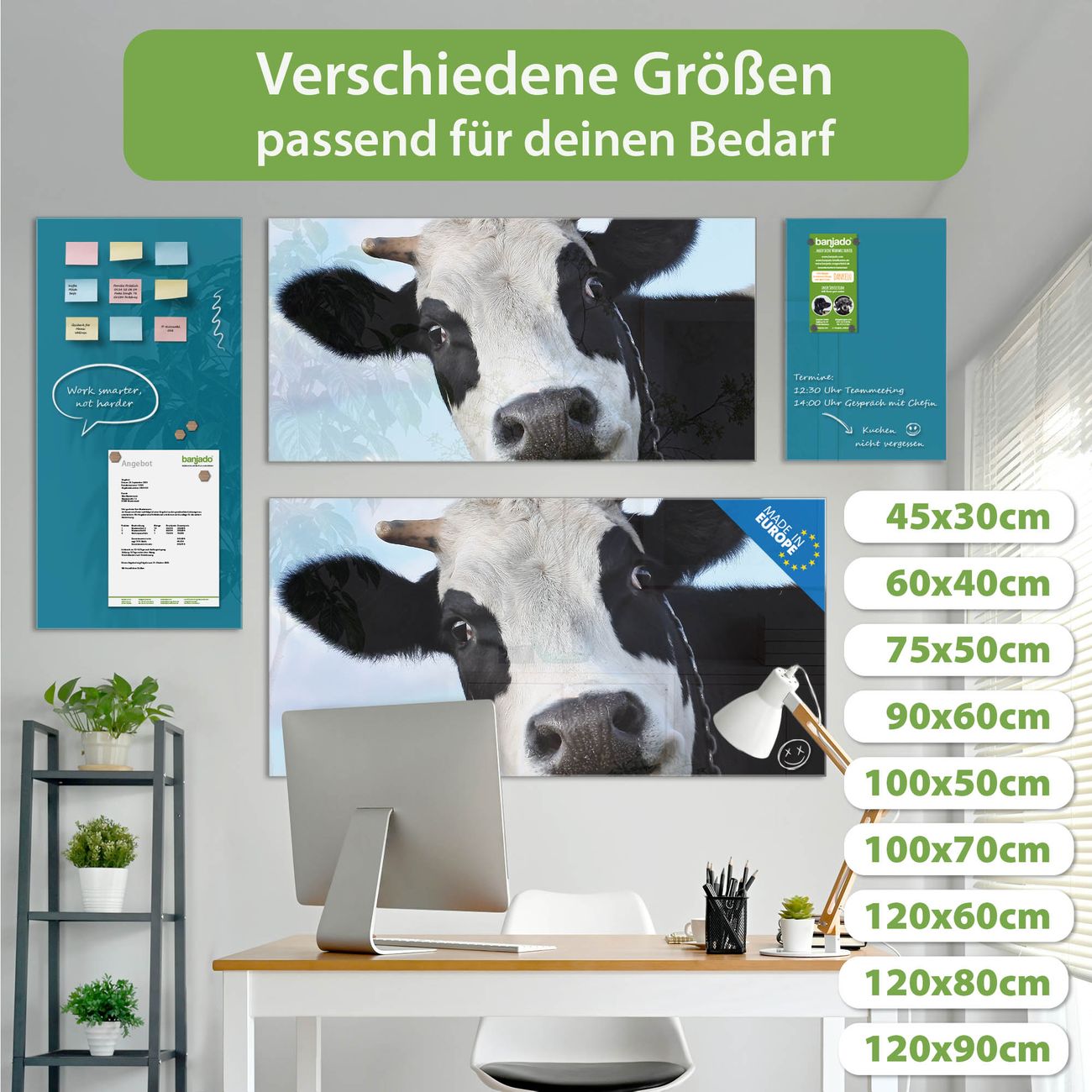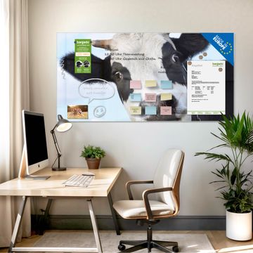 Die banjado Glas Magnettafel mit dem Motiv Motiv Muh verbindet Funktionalität mit Stil. Sie ersetzt das Zettelchaos durch klare Strukturen und bringt dabei eine warme, natürliche Atmosphäre in Ihr Zuhause. Ob im Büro, in der Küche oder im Eingangsbereich - dieses Design-Board zieht Blicke an und sorgt für Ordnung mit Charakter.