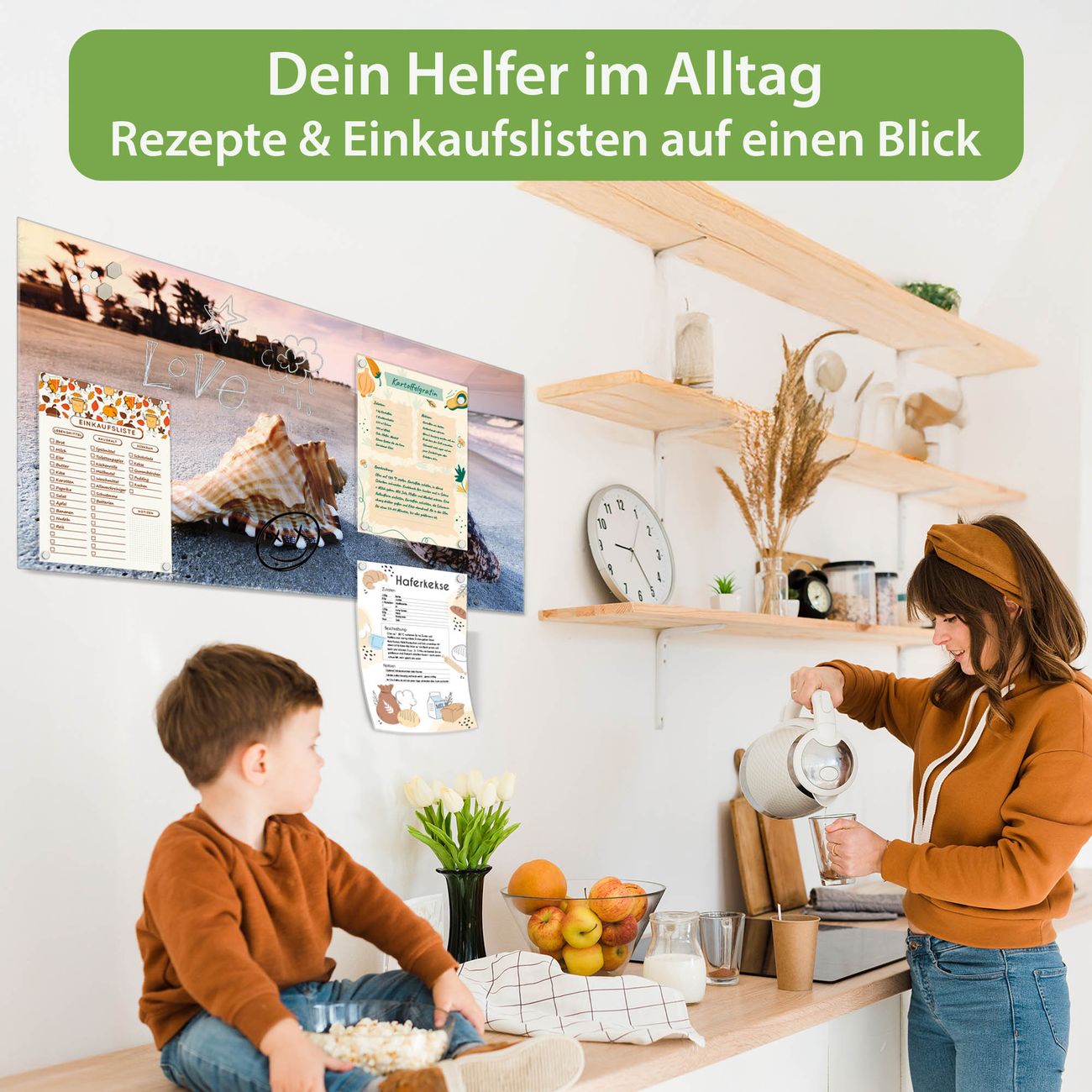 Ein Stück Design, das Ihren Alltag organisiert. Schreiben, heften, inspirieren - alles an einem Ort. Qualität, die man spürt. Montage leicht gemacht. Handwerk mit Herz - veredelt in Sachsen. Einzigartiges Design mit Motiv Motiv Muscheln Beschreibbare Glasoberfläche, leicht zu reinigen Starke Magnetkraft durch Stahlrückwand Inklusive 4 Neodym-Magneten Flexible Montageoptionen Handveredelt in Sachsen - Qualität, die bleibt
