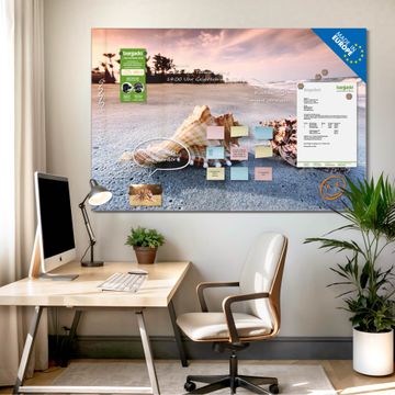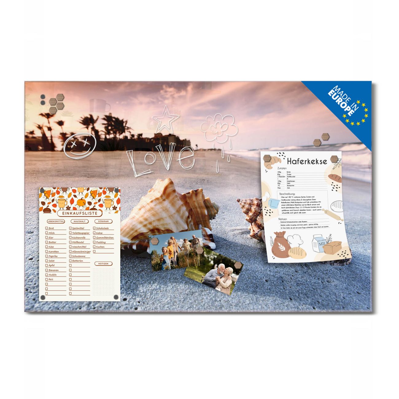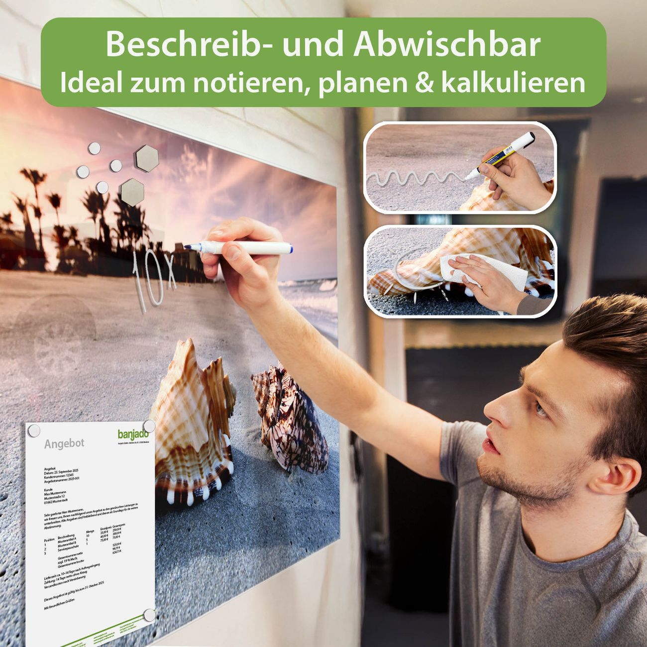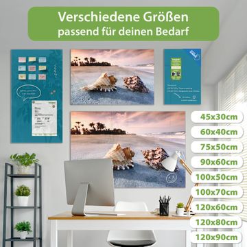Die banjado Glas Magnettafel mit dem Motiv Motiv Muscheln verbindet Funktionalität mit Stil. Sie ersetzt das Zettelchaos durch klare Strukturen und bringt dabei eine warme, natürliche Atmosphäre in Ihr Zuhause. Ob im Büro, in der Küche oder im Eingangsbereich - dieses Design-Board zieht Blicke an und sorgt für Ordnung mit Charakter.